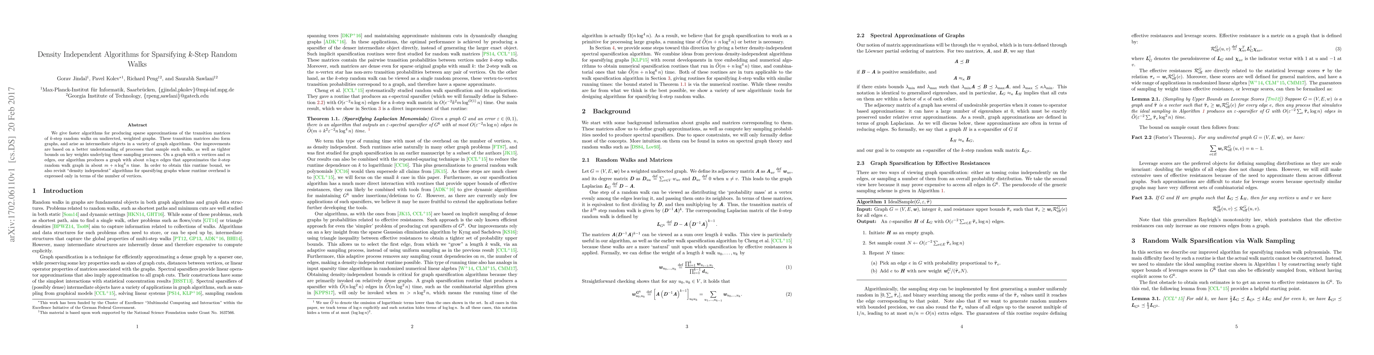 We give faster algorithms for producing sparse approximations of the transition matrices of $k$-step random walks on undirected, weighted graphs. These transition matrices also form graphs, and arise as intermediate objects in a variety of graph algorithms. Our improvements are based on a better understanding of processes that sample such walks, as well as tighter bounds on key weights underlying these sampling processes. On a graph with $n$ vertices and $m$ edges, our algorithm produces a graph with about $n\log{n}$ edges that approximates the $k$-step random walk graph in about $m + n \log^4{n}$ time. In order to obtain this runtime bound, we also revisit "density independent" algorithms for sparsifying graphs whose runtime overhead is expressed only in terms of the number of vertices.