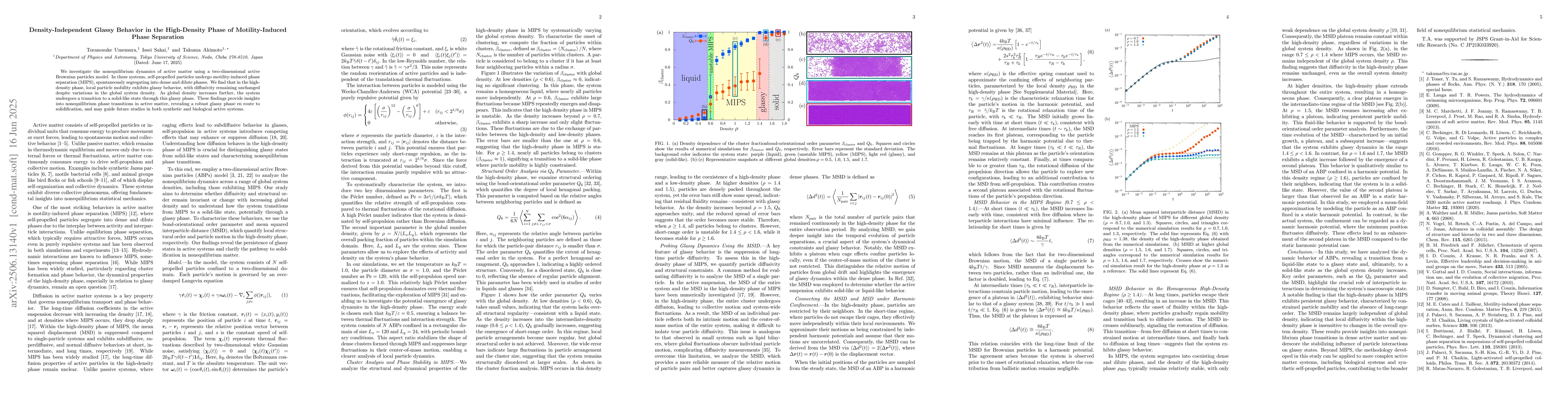 We investigate the nonequilibrium dynamics of active matter using a two-dimensional active Brownian particles model. In these systems, self-propelled particles undergo motility-induced phase separation (MIPS), spontaneously segregating into dense and dilute phases. We find that in the high-density phase, local particle mobility exhibits glassy behavior, with diffusivity remaining unchanged despite variations in the global system density. As global density increases further, the system undergoes a transition to a solid-like state through this glassy phase. These findings provide insights into nonequilibrium phase transitions in active matter, revealing a robust glassy phase en route to solidification, and may guide future studies in both synthetic and biological active systems.