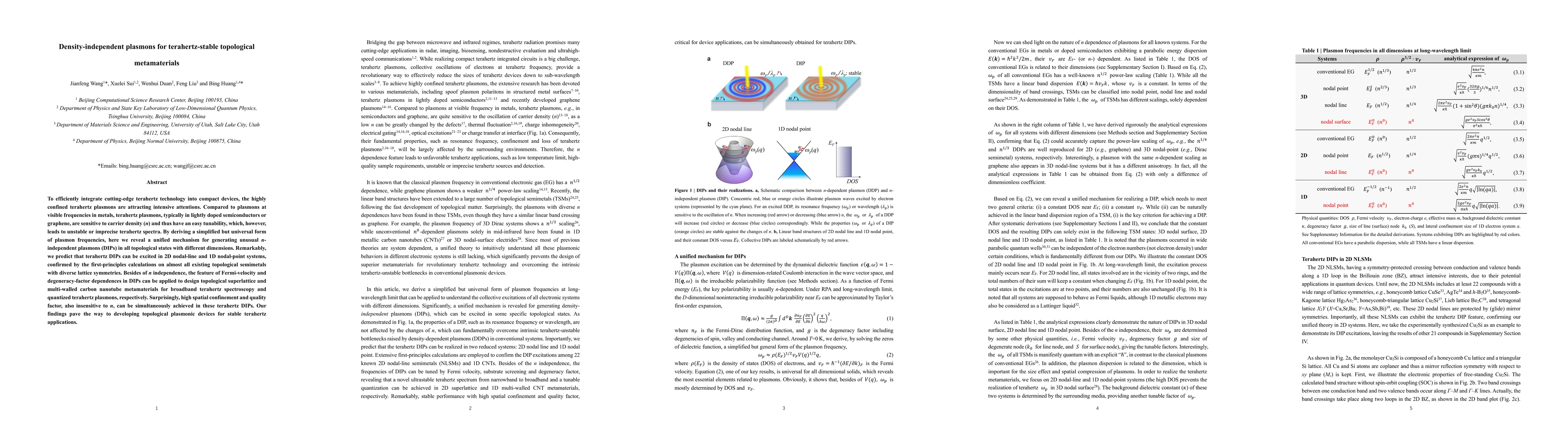 To efficiently integrate cutting-edge terahertz technology into compact devices, the highly confined terahertz plasmons are attracting intensive attentions. Compared to plasmons at visible frequencies in metals, terahertz plasmons, typically in lightly doped semiconductors or graphene, are sensitive to carrier density (n) and thus have an easy tunability, which, however, leads to unstable or imprecise terahertz spectra. By deriving a simplified but universal form of plasmon frequencies, here we reveal a unified mechanism for generating unusual n-independent plasmons (DIPs) in all topological states with different dimensions. Remarkably, we predict that terahertz DIPs can be excited in 2D nodal-line and 1D nodal-point systems, confirmed by the first-principles calculations on almost all existing topological semimetals with diverse lattice symmetries. Besides of n independence, the feature of Fermi-velocity and degeneracy-factor dependences in DIPs can be applied to design topological superlattice and multi-walled carbon nanotube metamaterials for broadband terahertz spectroscopy and quantized terahertz plasmons, respectively. Surprisingly, high spatial confinement and quality factor, also insensitive to n, can be simultaneously achieved in these terahertz DIPs. Our findings pave the way to developing topological plasmonic devices for stable terahertz applications.