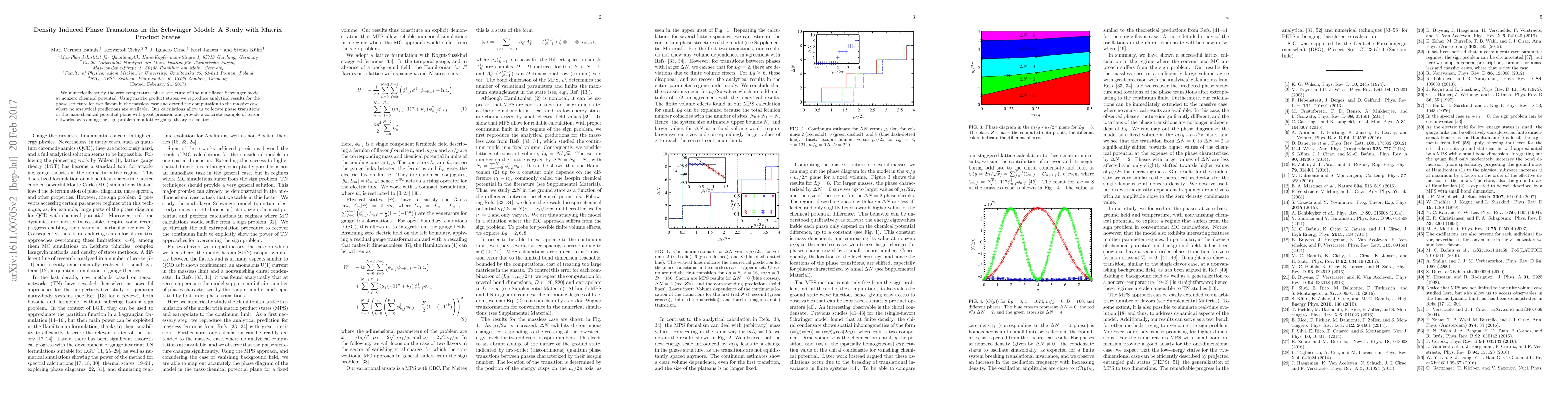 We numerically study the zero temperature phase structure of the multiflavor Schwinger model at nonzero chemical potential. Using matrix product states, we reproduce analytical results for the phase structure for two flavors in the massless case and extend the computation to the massive case, where no analytical predictions are available. Our calculations allow us to locate phase transitions in the mass-chemical potential plane with great precision and provide a concrete example of tensor networks overcoming the sign problem in a lattice gauge theory calculation.