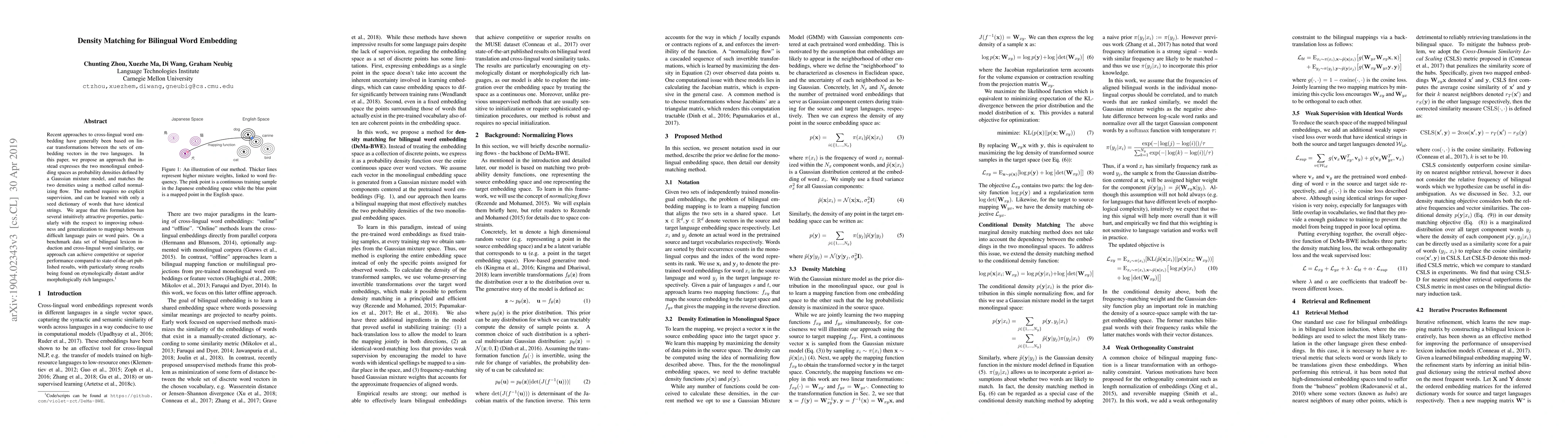 This paper proposes a novel approach to bilingual word embedding using Gaussian mixture models and normalizing flow, achieving competitive performance on benchmark datasets with improved robustness.