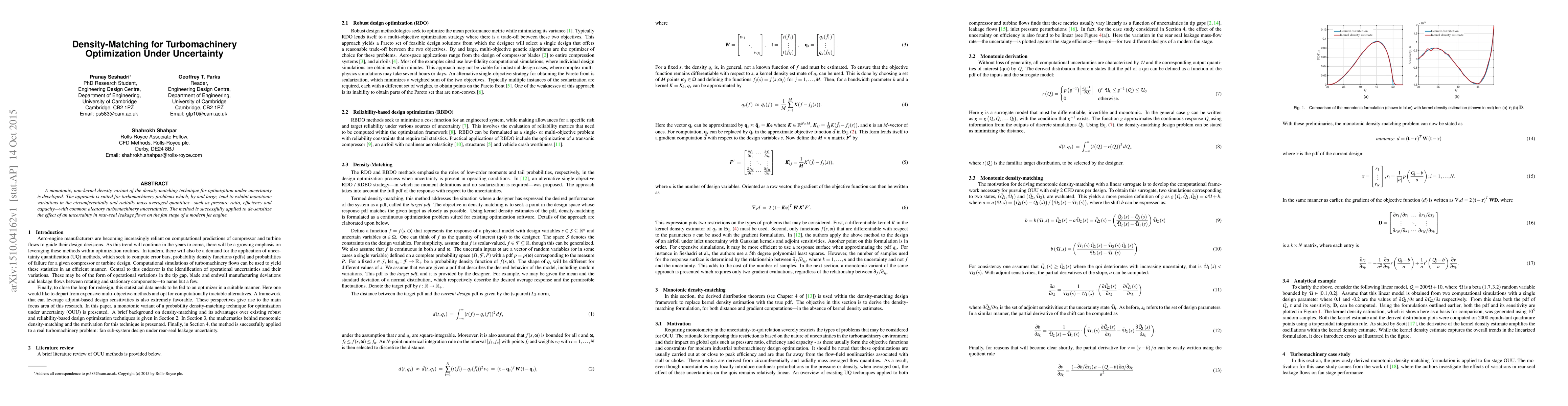 A monotonic, non-kernel density variant of the density-matching technique for optimization under uncertainty is developed. The approach is suited for turbomachinery problems which, by and large, tend to exhibit monotonic variations in the circumferentially and radially mass-averaged quantities--such as pressure ratio, efficiency and capacity--with common aleatory turbomachinery uncertainties. The method is successfully applied to de-sensitize the effect of an uncertainty in rear-seal leakage flows on the fan stage of a modern jet engine.