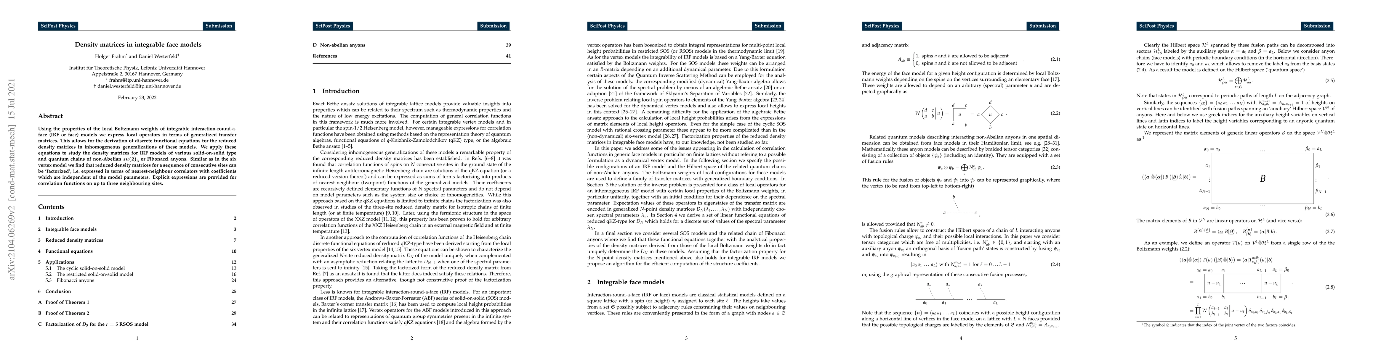 Researchers used integrable face models to derive discrete functional equations for reduced density matrices, finding that these matrices can be factorized into nearest-neighbour correlators with independent coefficients.