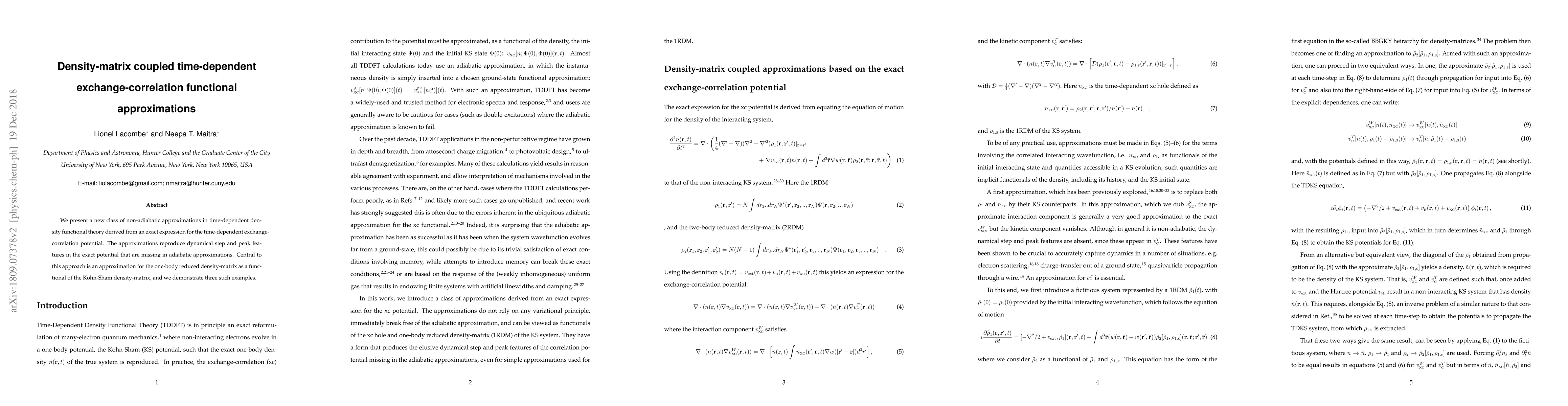 We present a new class of non-adiabatic approximations in time-dependent density functional theory derived from an exact expression for the time-dependent exchange-correlation potential. The approximations reproduce dynamical step and peak features in the exact potential that are missing in adiabatic approximations. Central to this approach is an approximation for the one-body reduced density-matrix as a functional of the Kohn-Sham density-matrix, and we demonstrate two such examples.