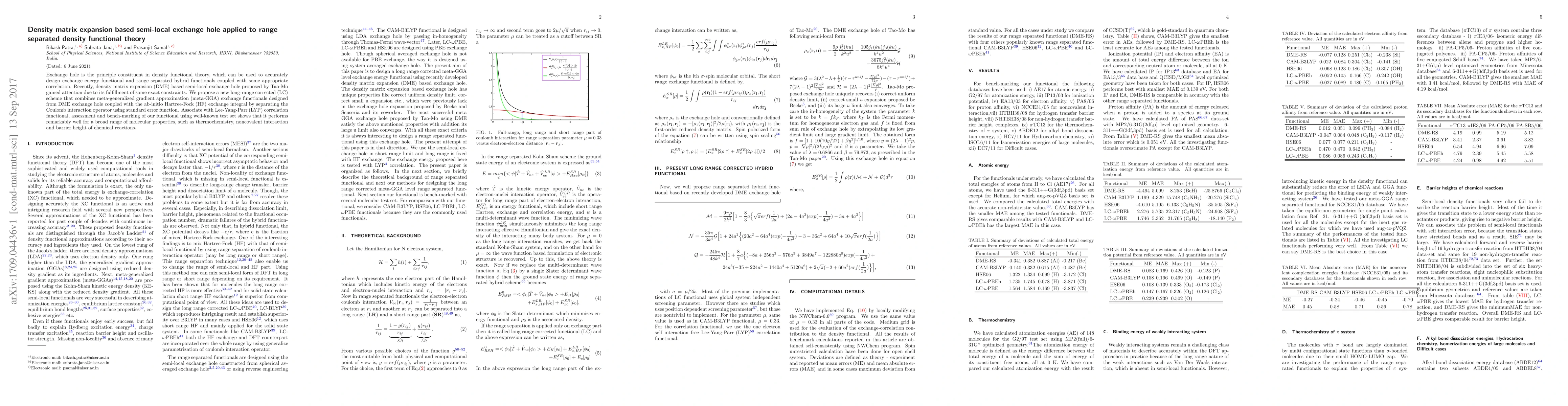 Exchange hole is the principle constituent in density functional theory, which can be used to accurately design exchange energy functional and range separated hybrid functionals coupled with some appropriate correlation. Recently, density matrix expansion (DME) based semi-local exchange hole proposed by Tao-Mo gained attention due to its fulfillment of some exact constraints. We propose a new long-range corrected (LC) scheme that combines meta-generalized gradient approximation (meta-GGA) exchange functionals designed from DME exchange hole coupled with the ab-initio Hartree-Fock (HF) exchange integral by separating the Coulomb interaction operator using standard error function. Associate with Lee-Yang-Parr (LYP) correlation functional, assessment and benchmarking of our functional using well-known test set shows that it performs remarkably well for a broad range of molecular properties, such as thermochemistry, noncovalent interaction and barrier height of chemical reactions.