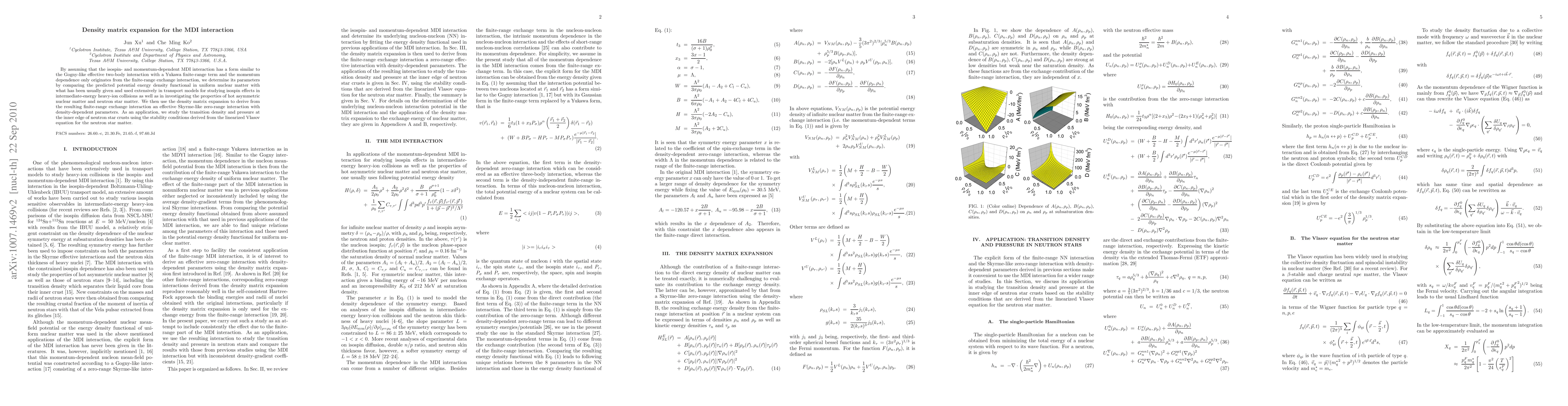 By assuming that the isospin- and momentum-dependent MDI interaction has a form similar to the Gogny-like effective two-body interaction with a Yukawa finite-range term and the momentum dependence only originates from the finite-range exchange interaction, we determine its parameters by comparing the predicted potential energy density functional in uniform nuclear matter with what has been usually given and used extensively in transport models for studying isospin effects in intermediate-energy heavy-ion collisions as well as in investigating the properties of hot asymmetric nuclear matter and neutron star matter. We then use the density matrix expansion to derive from the resulting finite-range exchange interaction an effective Skyrme-like zero-range interaction with density-dependent parameters. As an application, we study the transition density and pressure at the inner edge of neutron star crusts using the stability conditions derived from the linearized Vlasov equation for the neutron star matter.