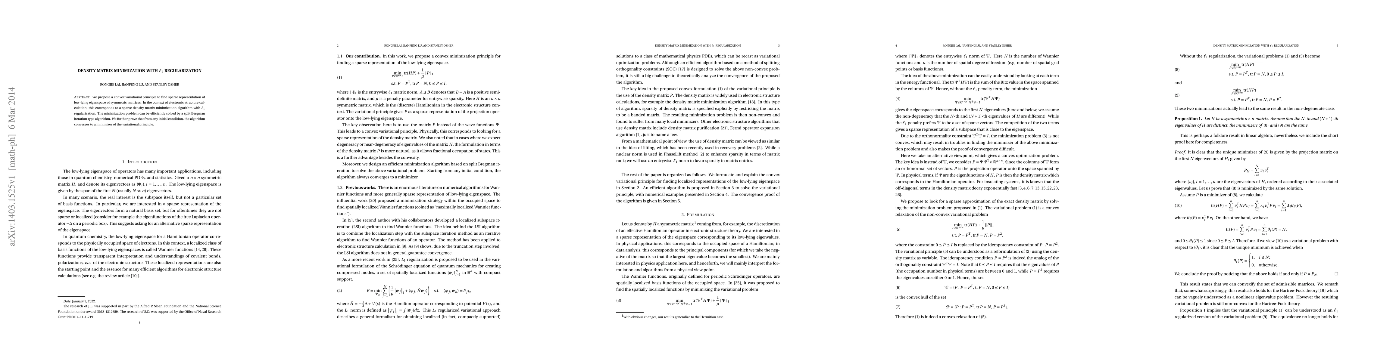 This paper proposes a convex variational principle for sparse representation of low-lying eigenspaces of symmetric matrices, specifically applied to sparse density matrix minimization in electronic structure calculations. The algorithm utilizes $\ell_1$ regularization and is efficiently solved via a split Bergman iteration, with proven convergence from any initial condition.