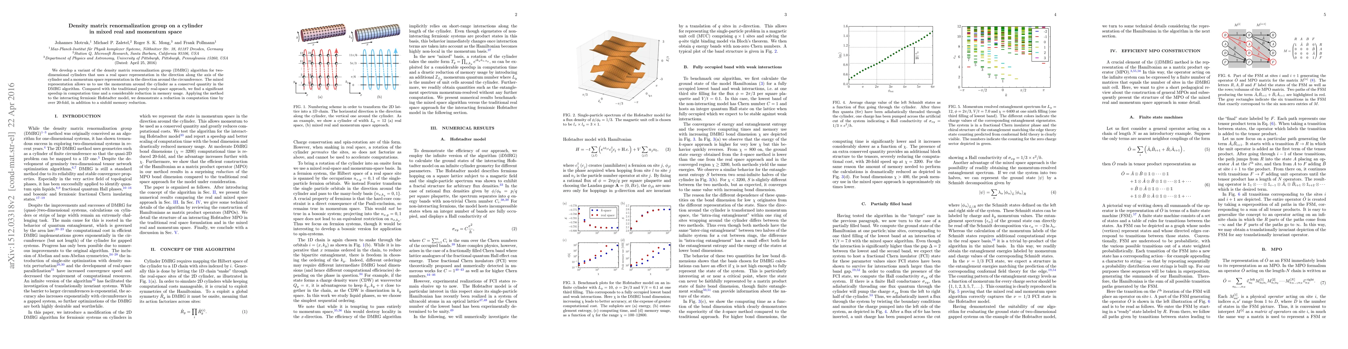 This paper introduces a hybrid real and momentum space density matrix renormalization group (DMRG) algorithm for two-dimensional cylinders, achieving a 20-fold speedup and a sixfold reduction in memory usage compared to a traditional real-space approach. The method leverages the momentum around the cylinder's circumference as a conserved quantity.