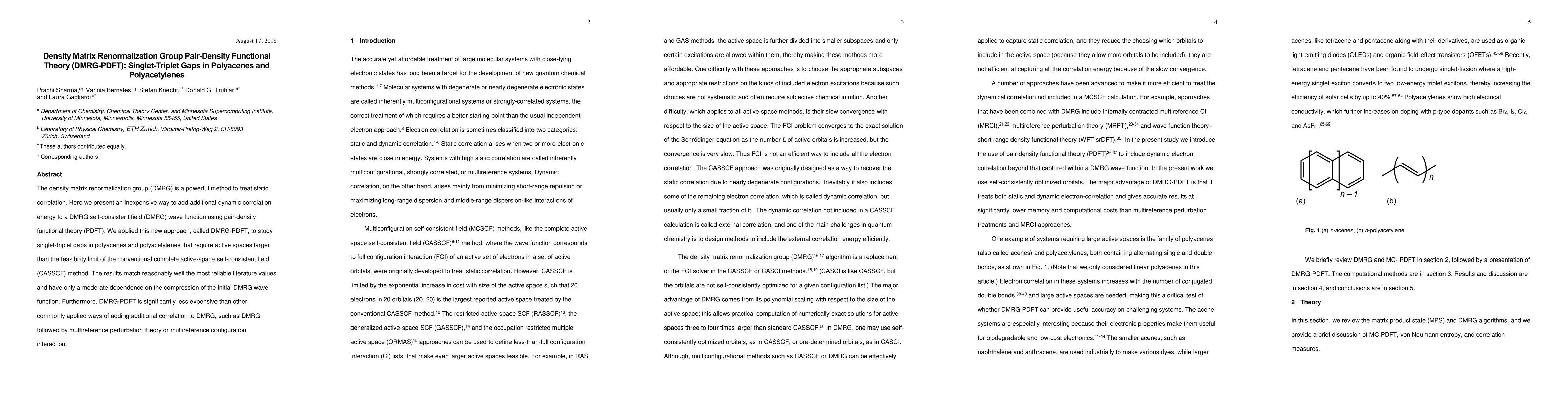 This paper introduces DMRG-PDFT, a cost-effective method combining DMRG and pair-density functional theory to add dynamic correlation to DMRG wave functions. The approach is applied to study singlet-triplet gaps in polyacenes and polyacetylenes, yielding results comparable to the most reliable methods while being significantly cheaper than alternatives like DMRG followed by multireference perturbation theory.