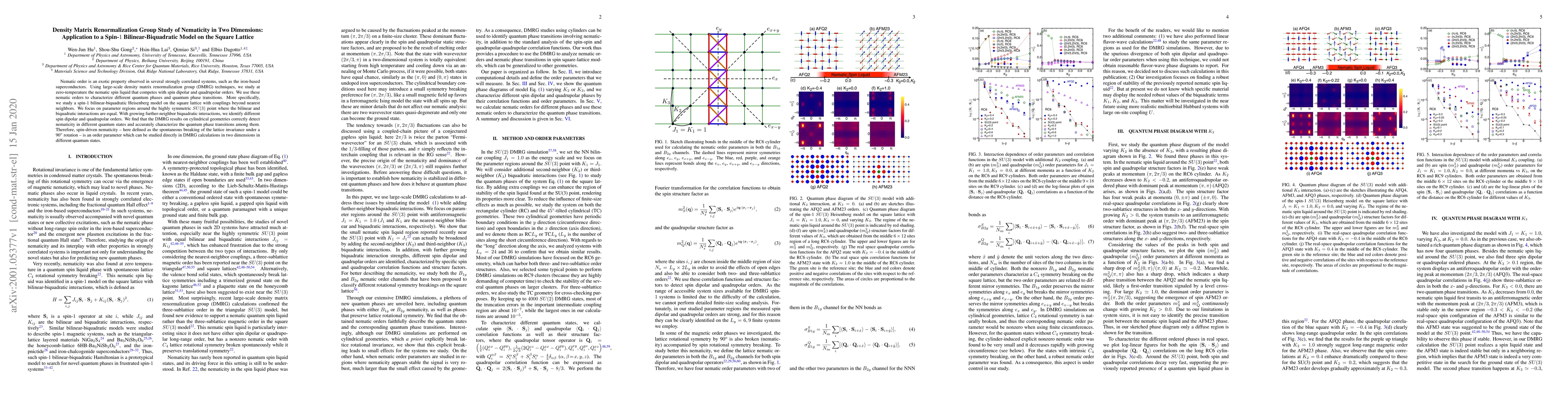 This paper employs density matrix renormalization group (DMRG) techniques to study nematicity in a spin-$1$ bilinear-biquadratic model on a square lattice, focusing on quantum phase transitions and orders. The DMRG analysis reveals nematicity as a spontaneous breaking of lattice rotational symmetry, accurately characterizing different quantum phases and transitions.