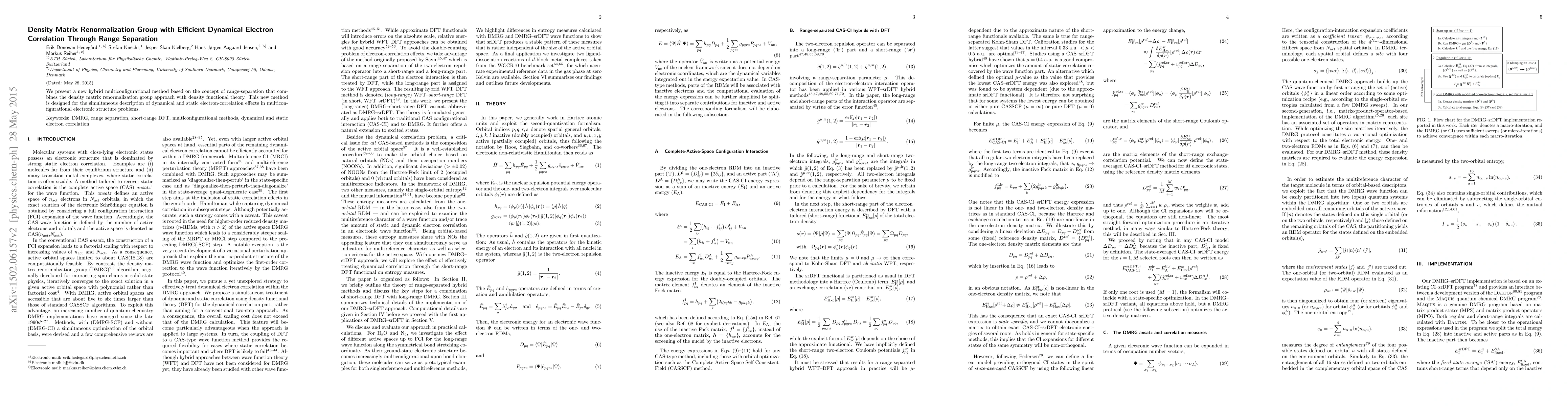 Summary: A new hybrid method integrates density matrix renormalization group with range-separated density functional theory to efficiently describe both dynamical and static electron correlation in complex electronic systems. This approach aims to improve the treatment of multiconfigurational problems.