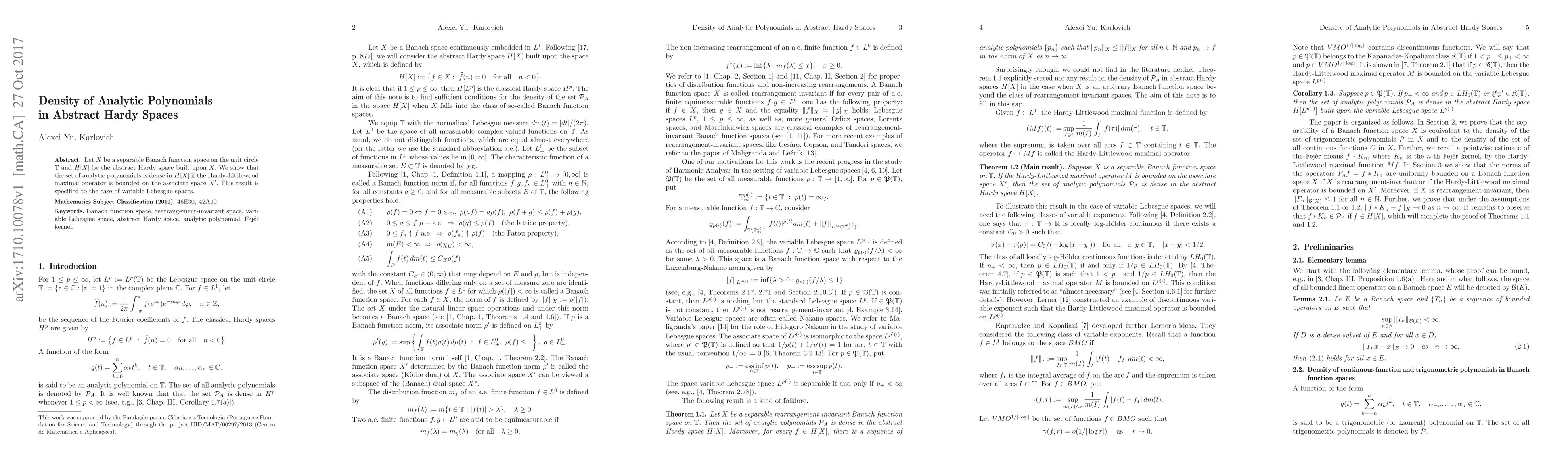 This paper demonstrates that analytic polynomials densely populate the abstract Hardy space $H[X]$ when $X$ is a separable Banach function space and the Hardy-Littlewood maximal operator is bounded on $X'$, specifically focusing on variable Lebesgue spaces.