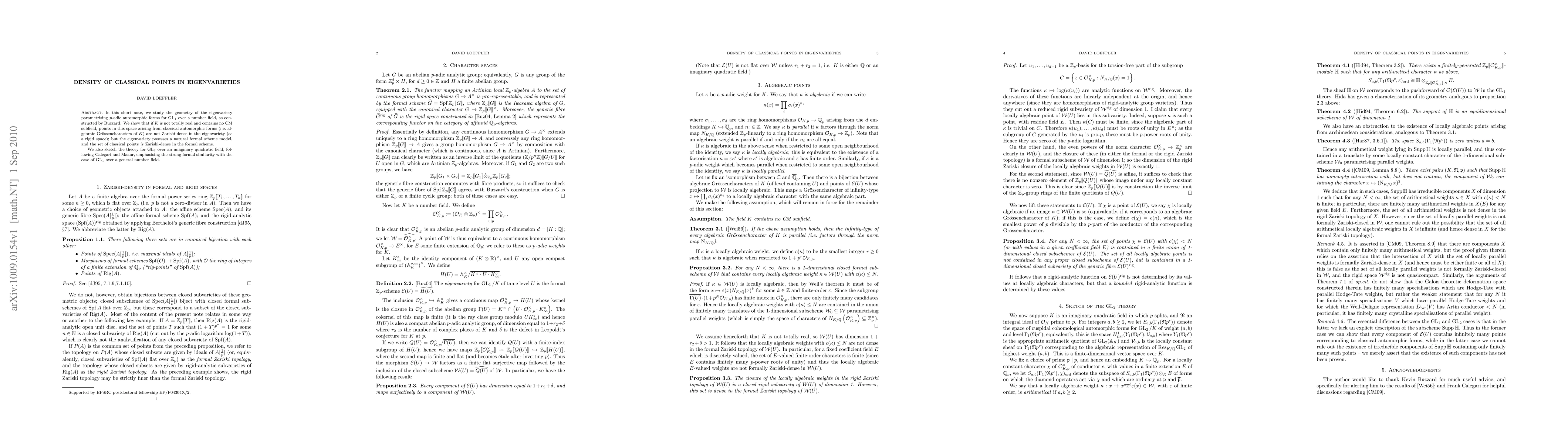 This paper studies the geometry of eigenvarieties for p-adic automorphic forms over number fields, showing that classical points are not Zariski-dense in non-real fields without CM subfields, but are formal scheme dense.
