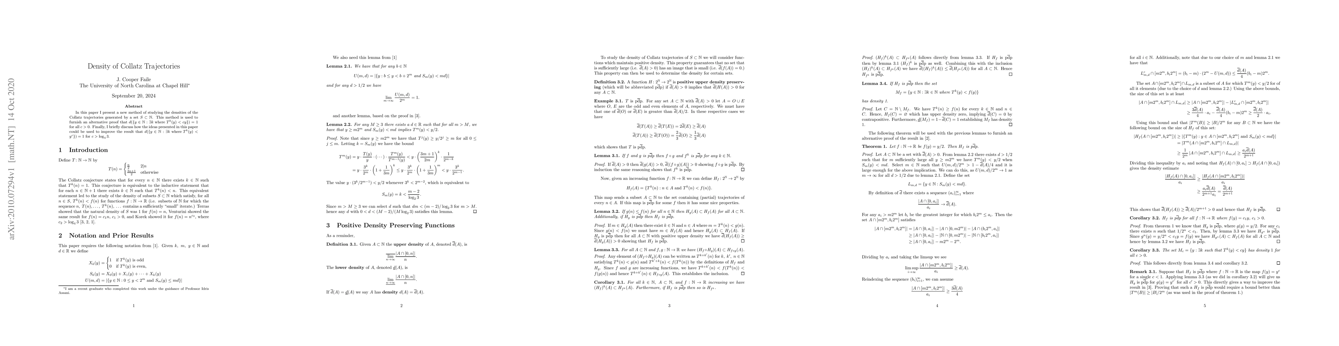 This paper introduces a novel method to analyze the densities of Collatz trajectories from set S in natural numbers. It provides an alternative proof for the density of trajectories less than a scalar multiple of the initial number, and hints at potential improvements for a similar density result involving polynomial growth.