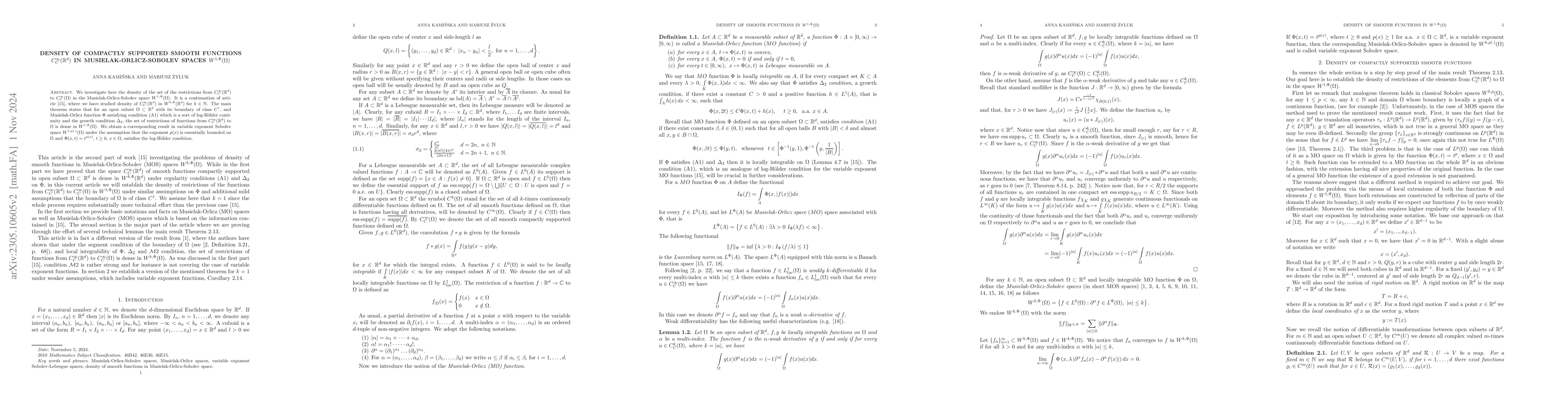 This paper investigates the density of compactly supported smooth functions $C_C^\infty(\mathbb{R}^d)$ in Musielak-Orlicz-Sobolev spaces $W^{1,\Phi}(\Omega)$. The main theorem proves that such restrictions are dense in $W^{1,\Phi}(\Omega)$ under certain conditions on $\Omega$ and $\Phi$.