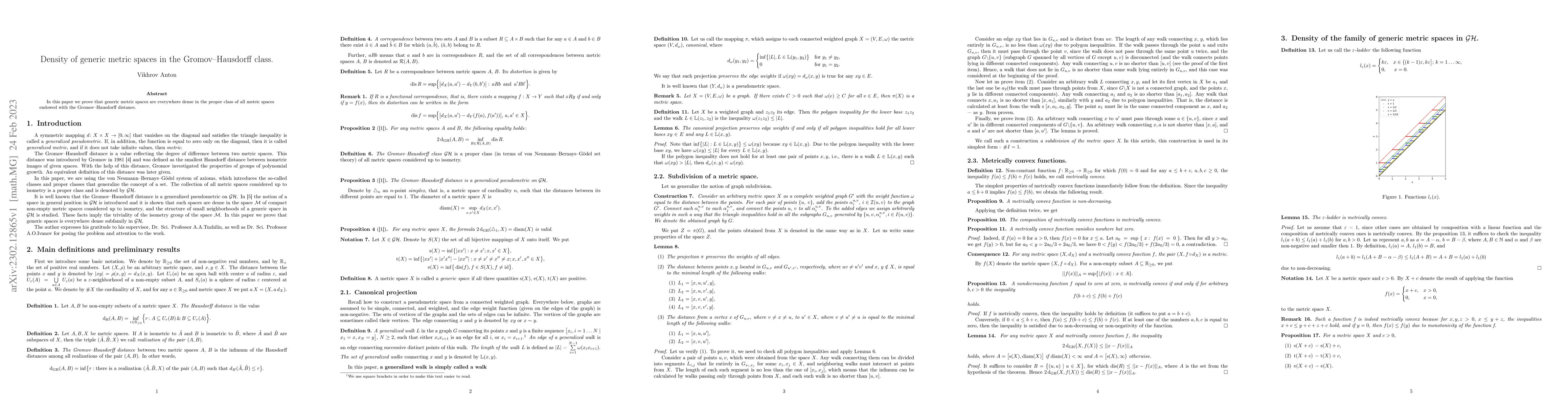 In this paper we prove that generic metric spaces are everywhere dense in the proper class of all metric spaces endowed with the Gromov-Hausdorff distance.