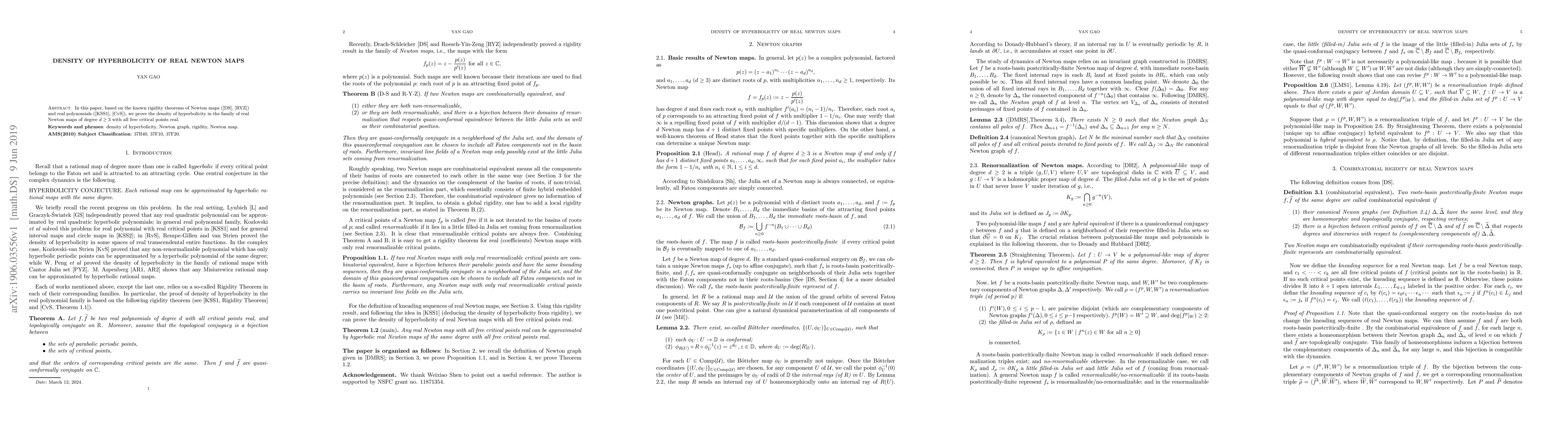 This paper demonstrates the density of hyperbolicity in real Newton maps of degree \(d > 2\) with all critical points being real, building on established rigidity theorems for Newton maps and real polynomials. The result shows that hyperbolic maps are dense within this family.