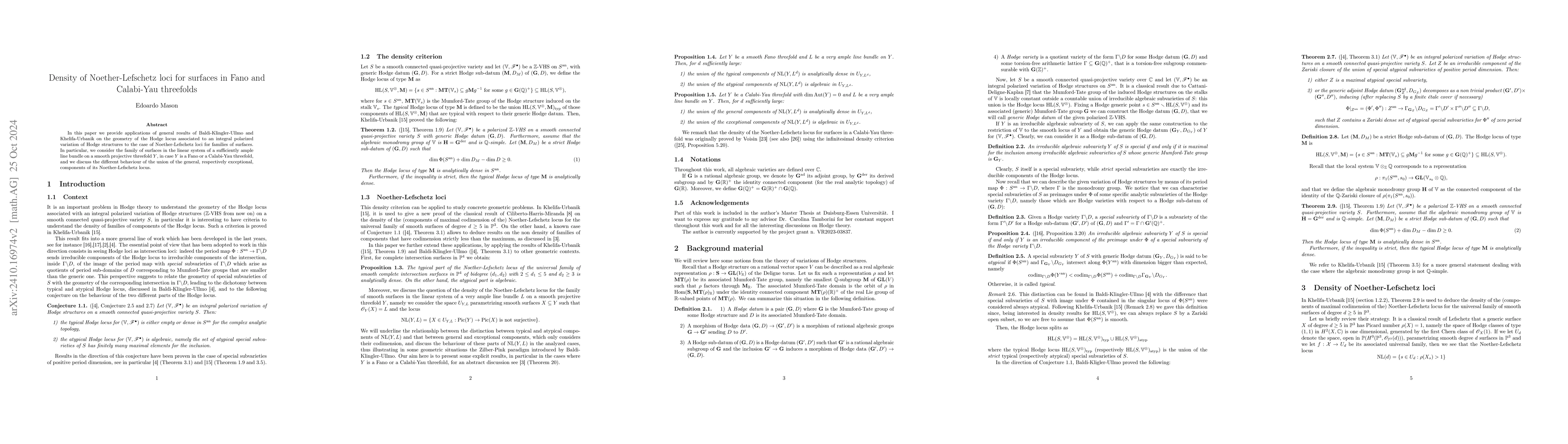 Summary: This paper applies results on the geometry of Hodge loci to analyze Noether-Lefschetz loci for surfaces in Fano and Calabi-Yau threefolds, focusing on the union of general and exceptional components within the locus.