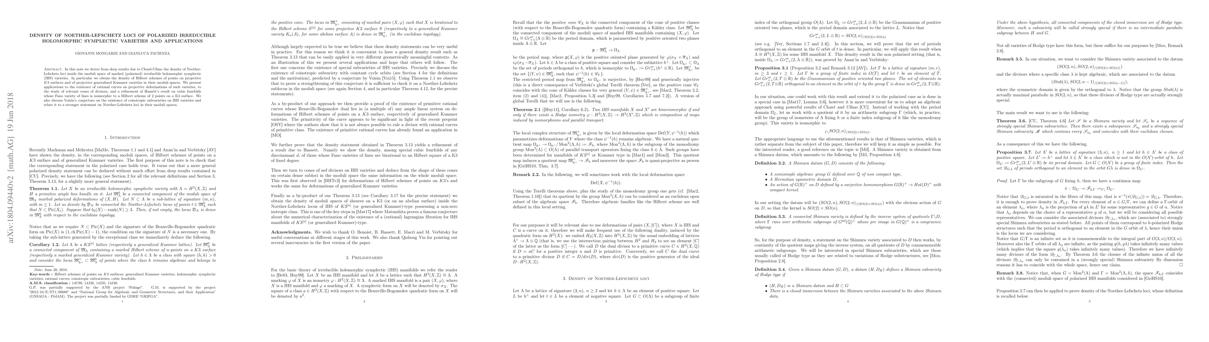 This paper demonstrates the density of Noether-Lefschetz loci within the moduli space of polarized irreducible holomorphic symplectic varieties, using results from Clozel-Ullmo. It also explores applications, including the existence of rational curves and implications for Hassett's result on cubic fourfolds.