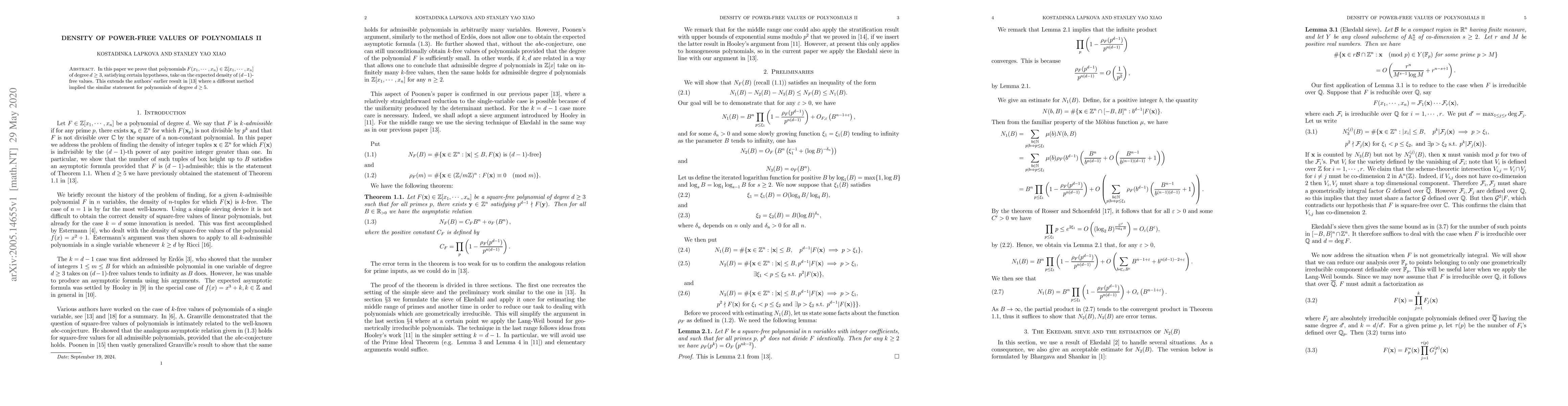 In this paper we prove that polynomials $F(x_1, \cdots, x_n) \in \mathbb{Z}[x_1, \cdots, x_n]$ of degree $d \geq 3$, satisfying certain hypotheses, take on the expected density of $(d-1)$-free values. This extends the authors' earlier result where a different method implied the similar statement for polynomials of degree $d\geq 5$.