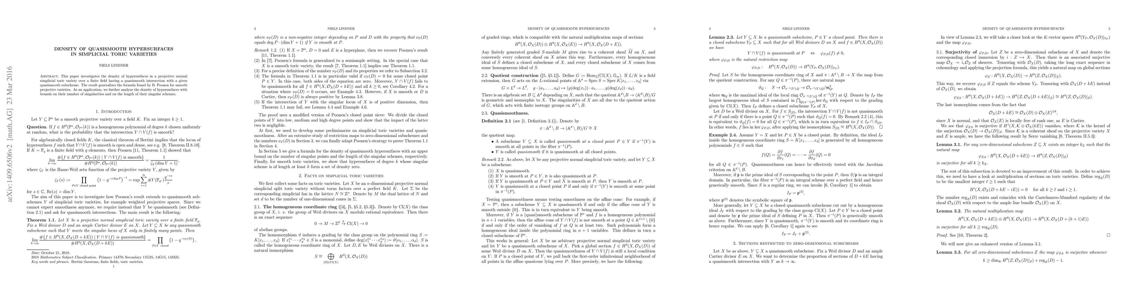 This paper investigates how dense hypersurfaces are in certain types of mathematical objects called toric varieties, providing a generalization of previous findings for smooth projective varieties.