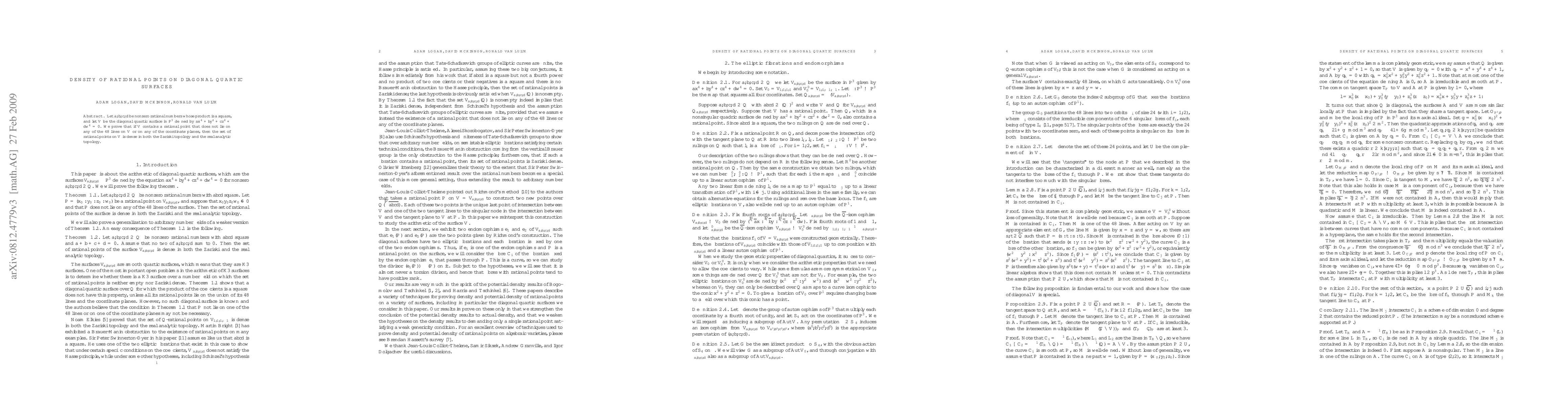 This paper proves that the diagonal quartic surface defined by ax^4+by^4+cz^4+dw^4=0, with a, b, c, d being nonzero rational numbers whose product is a square, has a dense set of rational points in both Zariski and real analytic topologies if it contains a rational point not lying on any of the 48 lines or coordinate planes on the surface.