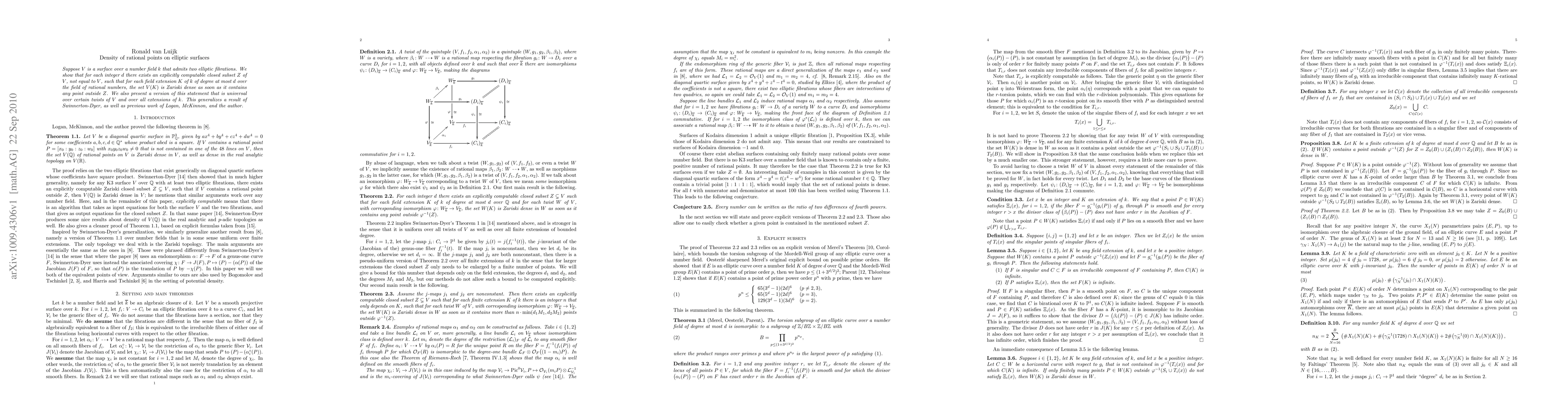 Suppose V is a surface over a number field k that admits two elliptic fibrations. We show that for each integer d there exists an explicitly computable closed subset Z of V, not equal to V, such that for each field extension K of k of degree at most d over the field of rational numbers, the set V(K) is Zariski dense as soon as it contains any point outside Z. We also present a version of this statement that is universal over certain twists of V and over all extensions of k. This generalizes a result of Swinnerton-Dyer, as well as previous work of Logan, McKinnon, and the author.