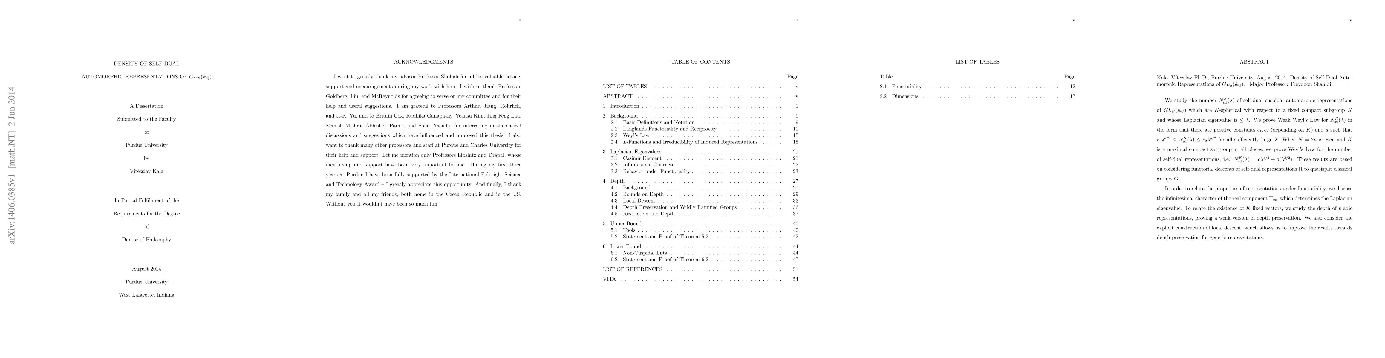 This paper investigates the density of self-dual cuspidal automorphic representations of $GL_N(\mathbb{A_Q})$, proving a Weak Weyl's Law for their count with respect to a compact subgroup $K$ and Laplacian eigenvalue. It establishes Weyl's Law for even $N$ and maximal compact subgroups, based on functorial descents to quasisplit classical groups.