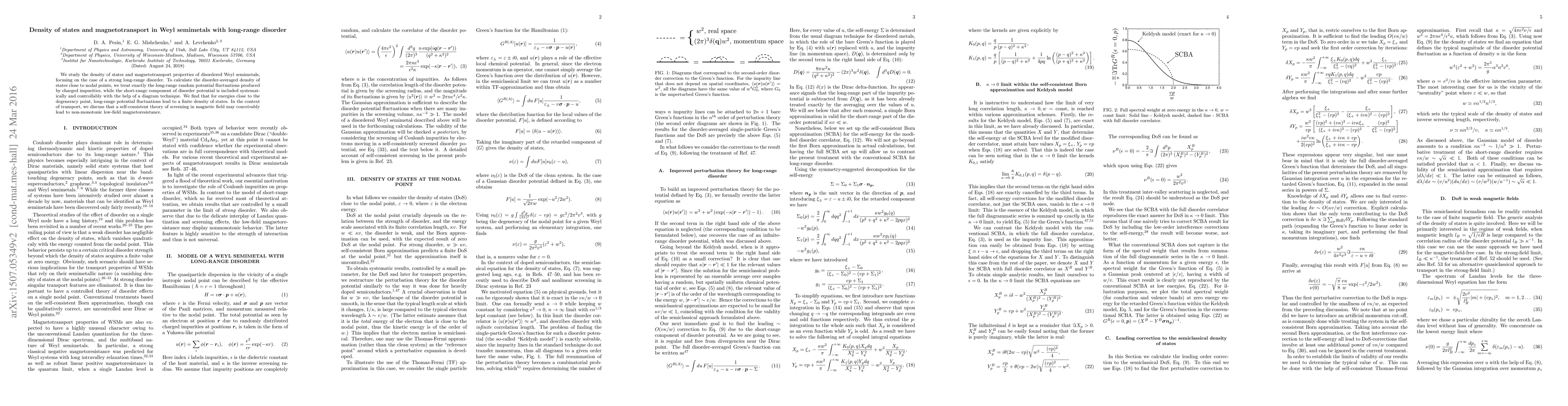 This paper investigates the density of states and magnetotransport in Weyl semimetals with strong long-range disorder. It reveals that long-range disorder induces a finite density of states near nodal points and suggests that self-consistent screening in a magnetic field could result in non-monotonic low-field magnetoresistance.