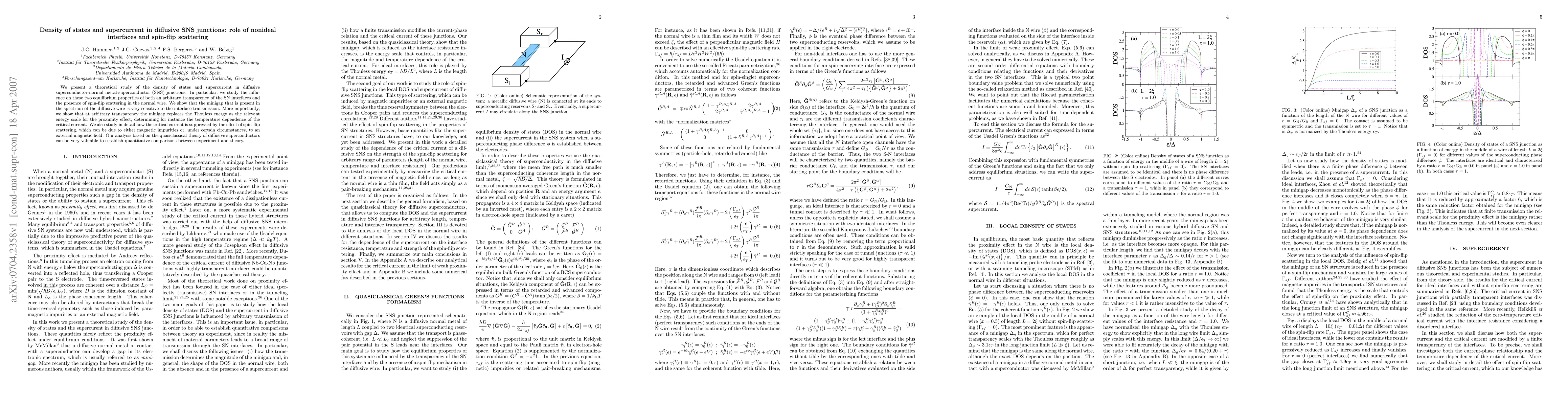 This paper theoretically investigates the density of states and supercurrent in diffusive SNS junctions, focusing on the effects of nonideal SN interfaces and spin-flip scattering. It finds that the minigap in the spectrum is highly sensitive to interface transparency, replacing the Thouless energy as the key energy scale for the proximity effect, and examines how spin-flip scattering suppresses the critical current.