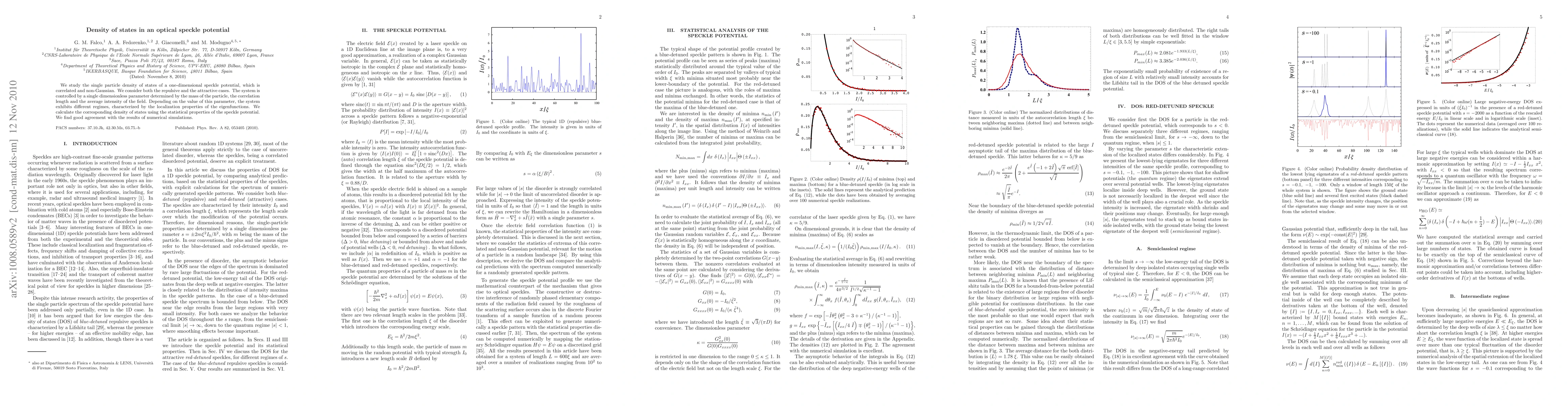 Researchers studied the density of states in a one-dimensional speckle potential, finding different regimes depending on a key parameter that controls localization properties, with good agreement with numerical simulations.