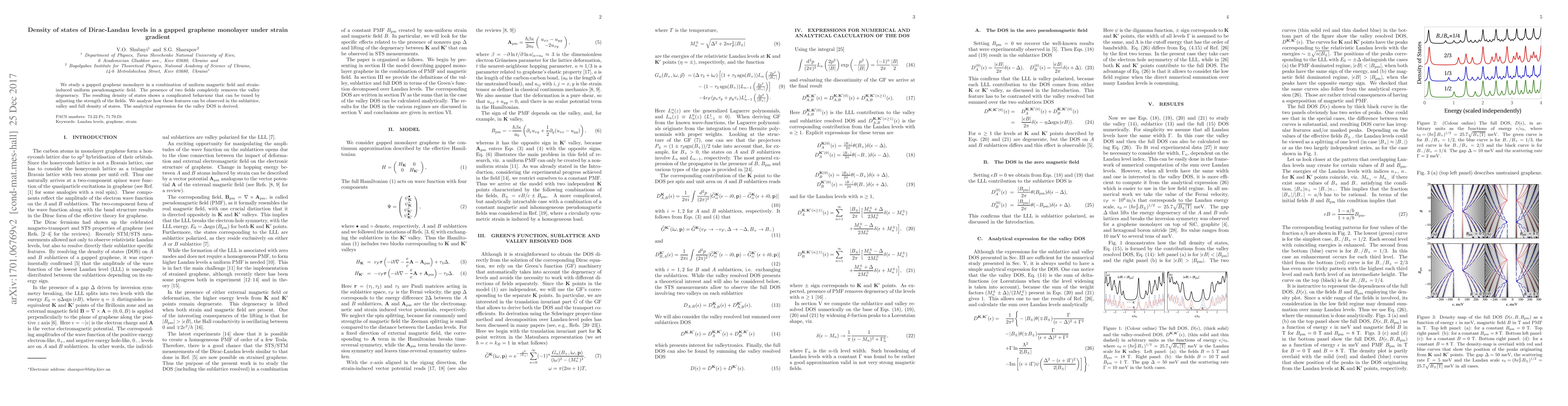 This study investigates a gapped graphene monolayer subjected to both uniform magnetic and strain-induced pseudomagnetic fields, revealing a tunable density of states that eliminates valley degeneracy. The paper derives an analytical expression for the valley density of states and analyzes its observable features in the sublattice and full densities of states.