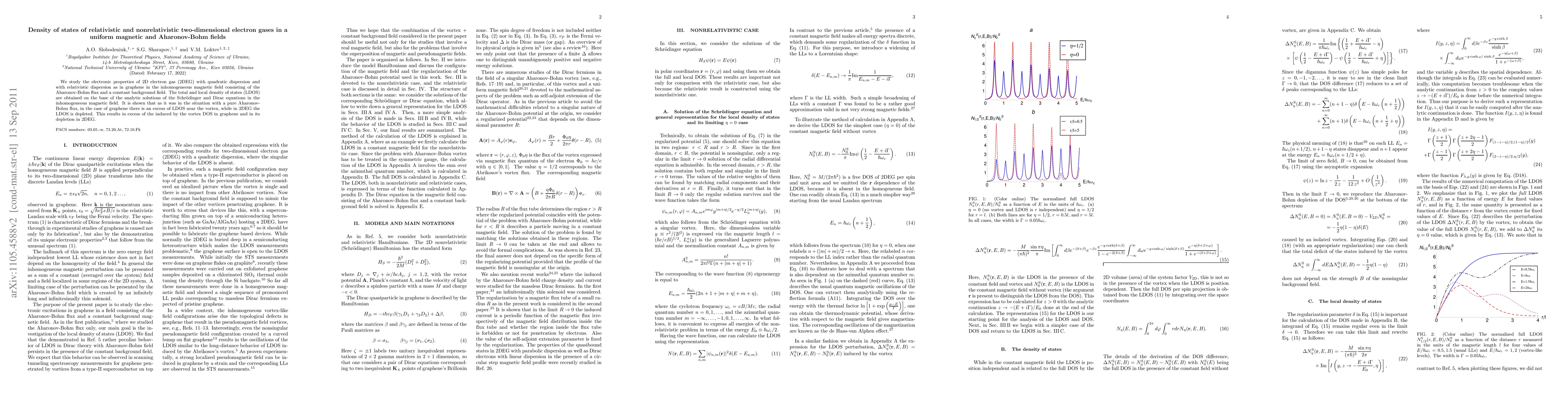 This paper investigates the density of states in 2D electron gases under the influence of both a uniform magnetic field and an Aharonov-Bohm flux, comparing nonrelativistic and relativistic systems. It finds that while graphene exhibits an excess density of states near the vortex, traditional 2DEG shows a depletion, highlighting distinct behaviors in these materials.