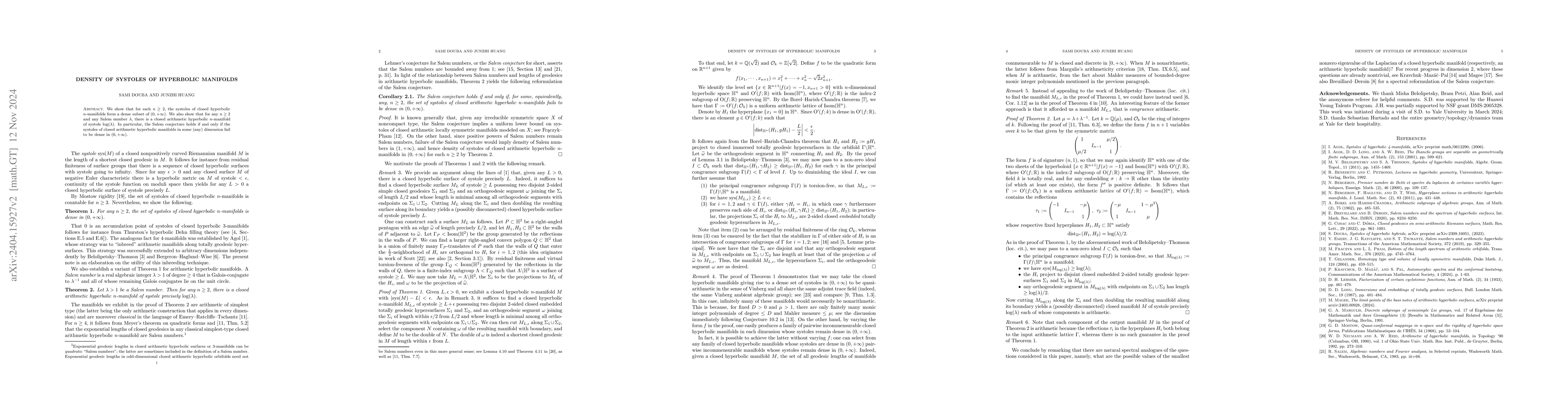 Summary: This paper demonstrates that the systoles of closed hyperbolic manifolds are densely distributed across the positive real numbers for dimensions $n \geq 2$. It also presents the existence of closed arithmetic hyperbolic $n$-manifolds with systoles equal to the logarithm of any Salem number, indicating a connection between the Salem conjecture and the density of systoles in closed arithmetic hyperbolic manifolds.