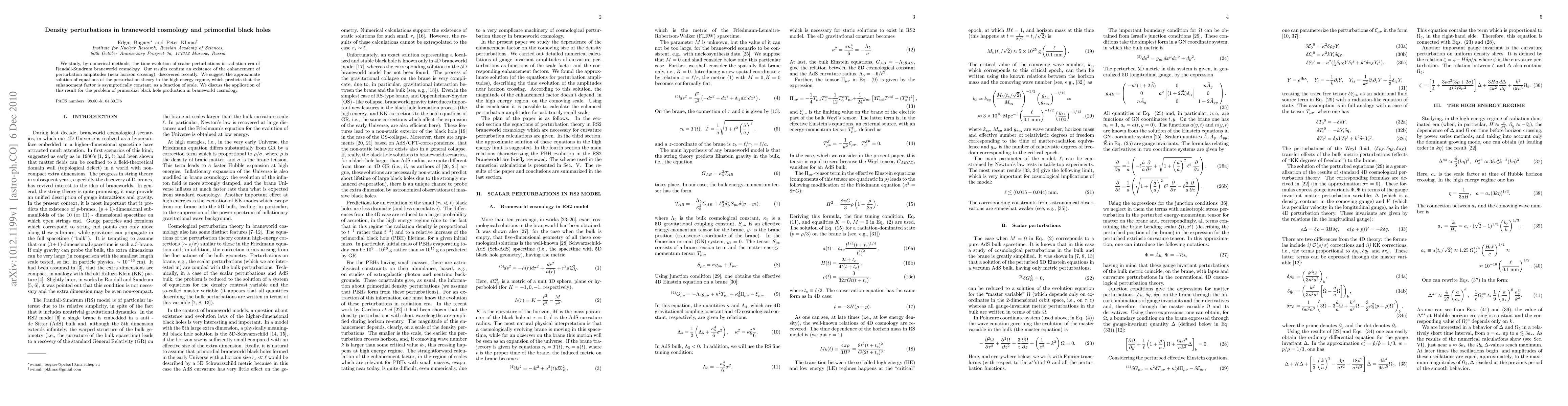 This paper numerically investigates scalar perturbations in the Randall-Sundrum braneworld cosmology during the radiation era, confirming an enhancement of perturbation amplitudes near horizon crossing. It proposes an approximate solution predicting a constant enhancement factor in high energy regimes, and discusses its implications for primordial black hole production.