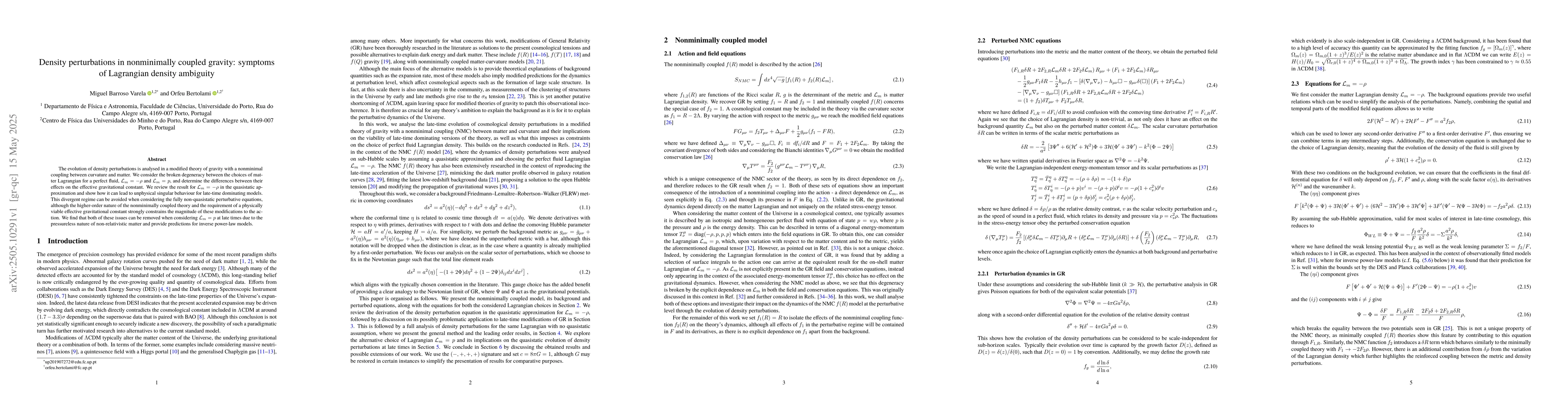 The paper presents a detailed analysis of density perturbations in nonminimally coupled gravity, comparing different Lagrangian density choices and their effects on the effective gravitational constant.