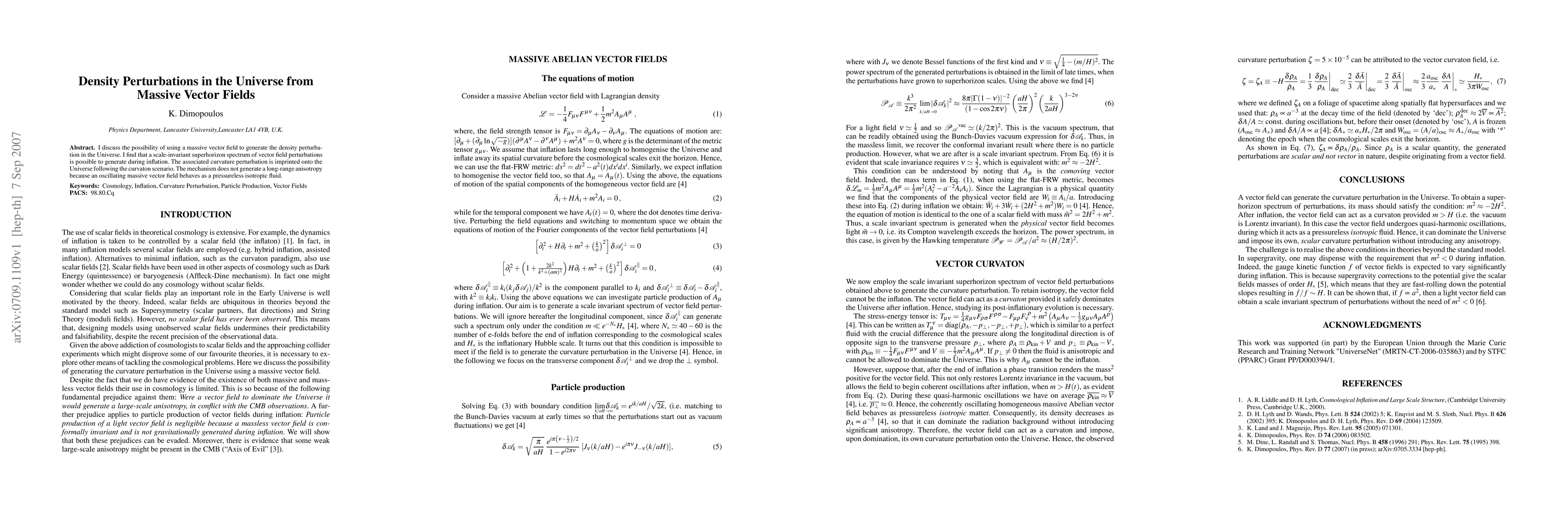 This paper explores how a massive vector field during inflation could generate density perturbations in the Universe, resulting in a scale-invariant superhorizon spectrum. The curvature perturbations are imprinted following the curvaton scenario, without producing long-range anisotropies due to the isotropic nature of the oscillating massive vector field.