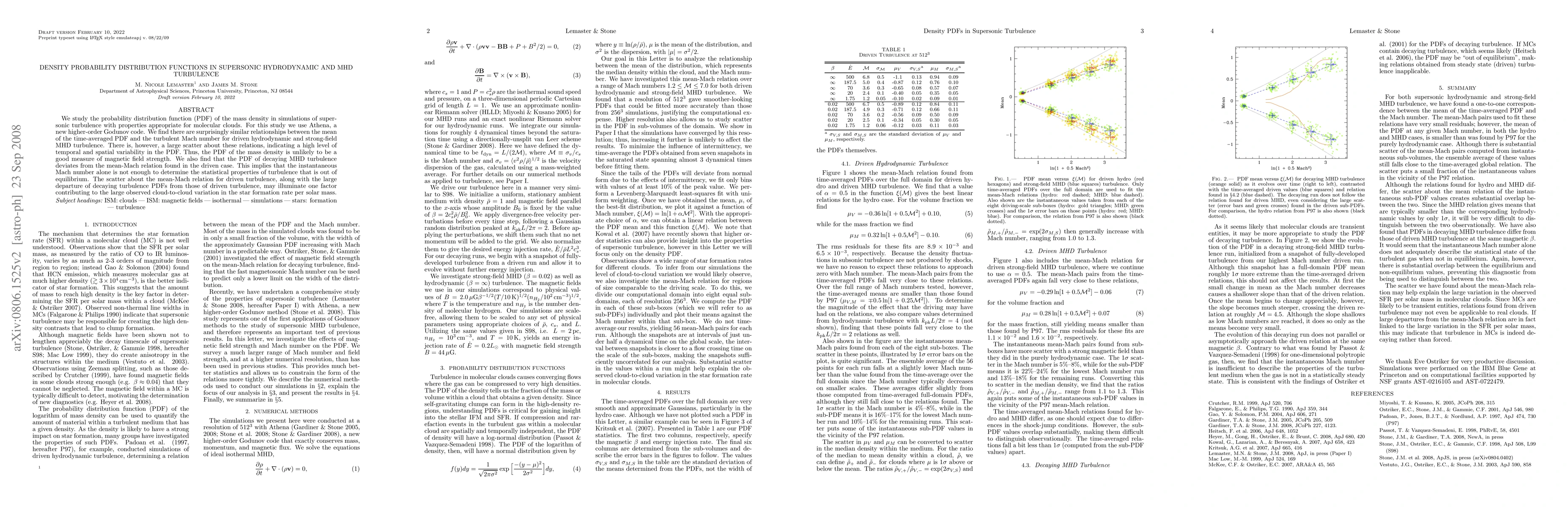 This study investigates the probability distribution function (PDF) of mass density in supersonic turbulence simulations using Athena, revealing similar relationships between the mean PDF and turbulent Mach number for both hydrodynamic and MHD turbulence. However, significant variability suggests the PDF is not a reliable indicator of magnetic field strength.