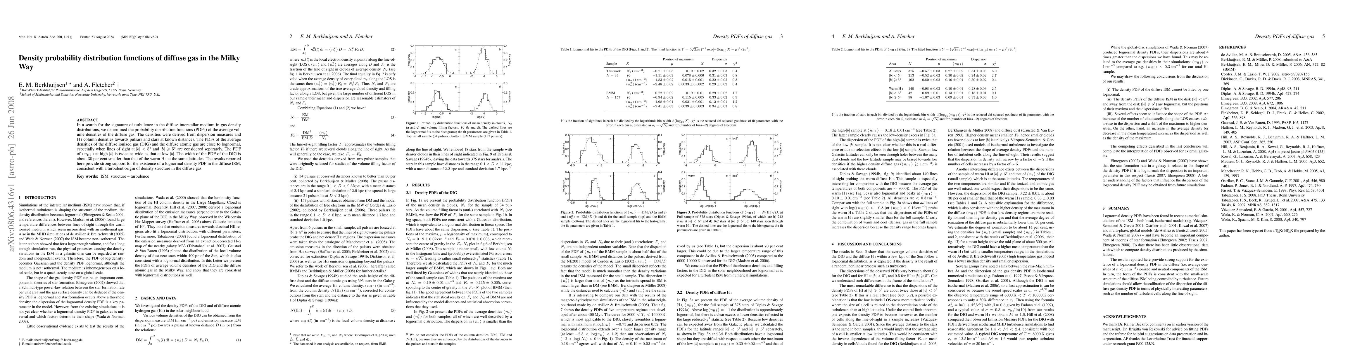 Research found that the probability distribution functions of diffuse gas in the Milky Way resemble lognormal distributions, suggesting a turbulent origin for density structure in the interstellar medium.