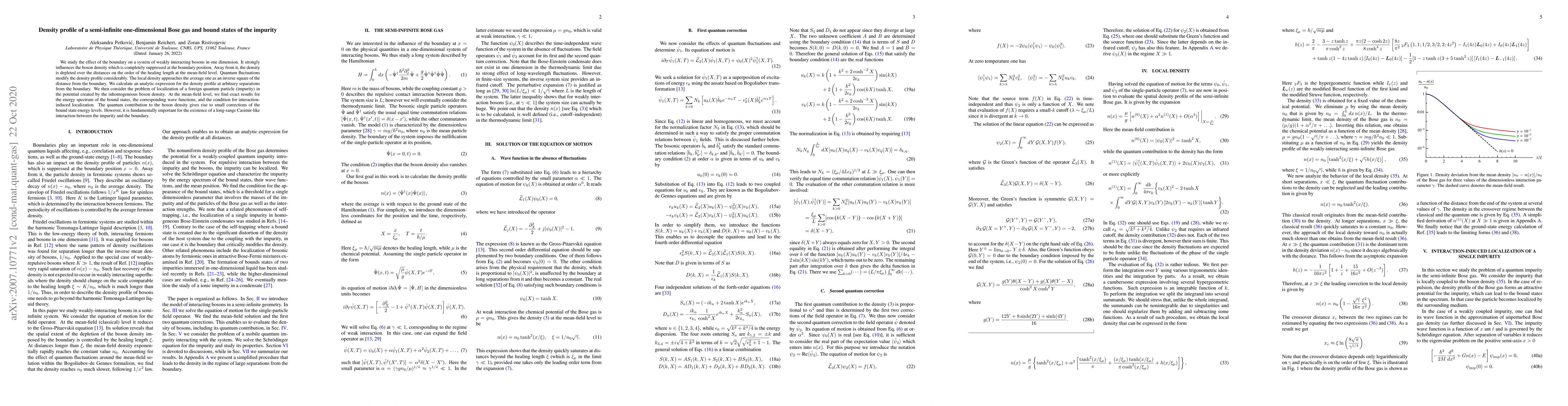 A study of a one-dimensional Bose gas near a boundary reveals suppressed density at the boundary, depleted density away from it, and quantum fluctuations significantly modify the profile. The research also explores bound states of an impurity in the created potential and finds exact results for energy spectrum and localization conditions.