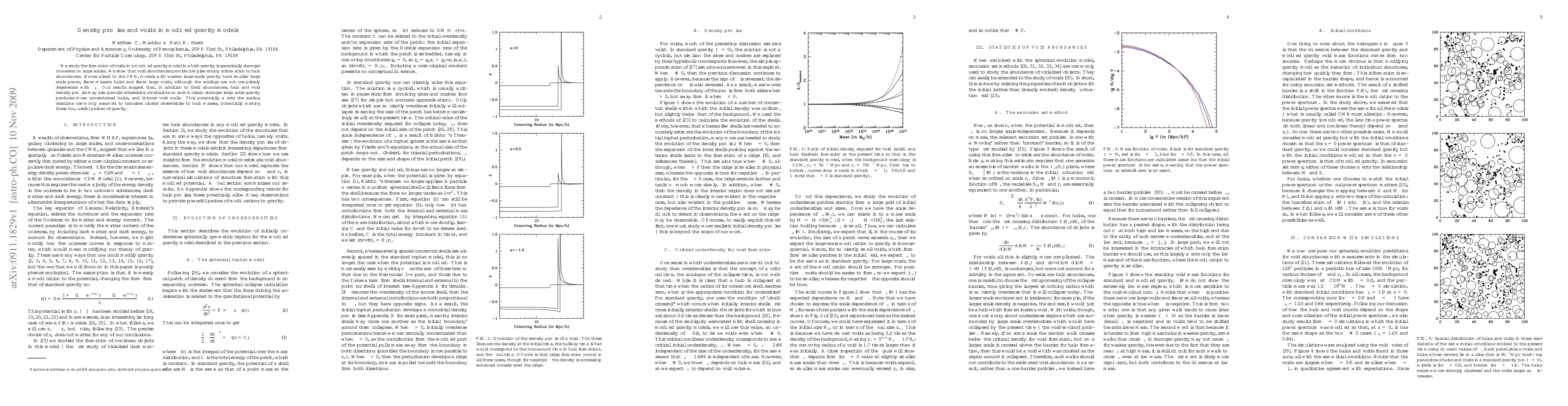 We study the formation of voids in a modified gravity model in which gravity is generically stronger or weaker on large scales. We show that void abundances provide complementary information to halo abundances: if normalized to the CMB, models with weaker large-scale gravity have smaller large scale power, fewer massive halos and fewer large voids, although the scalings are not completely degenerate with $\sigma_8$. Our results suggest that, in addition to their abundances, halo and void density profiles may also provide interesting constraints on such models: stronger large scale gravity produces more concentrated halos, and thinner void walls. This potentially affects the scaling relations commonly assumed to translate cluster observables to halo masses, potentially making these too, useful probes of gravity.
