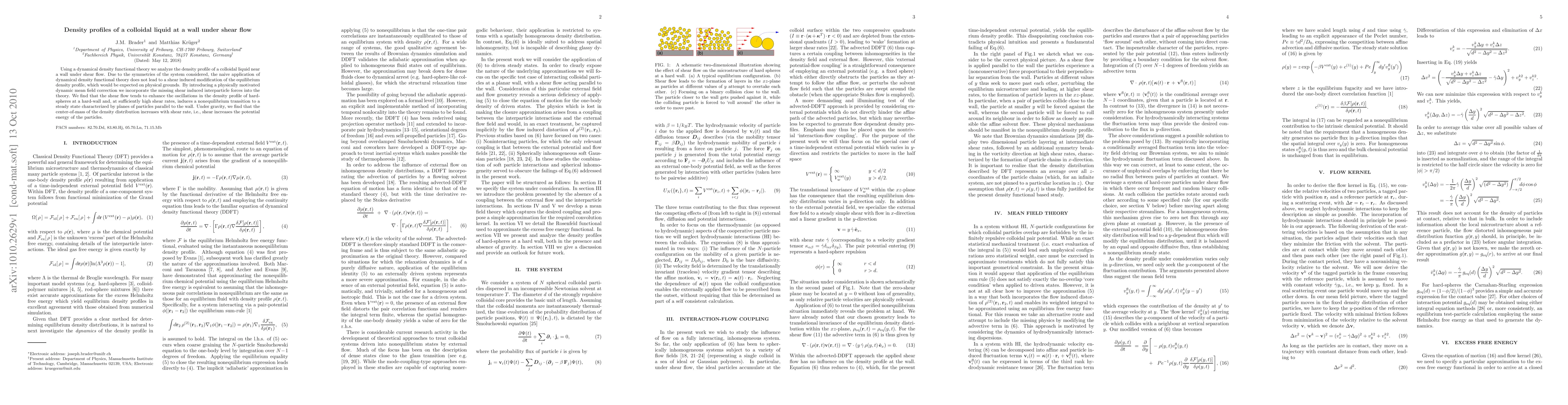This paper uses dynamical density functional theory to study density profiles of colloidal liquids near a wall under shear flow, revealing that shear enhances density oscillations and induces a nonequilibrium steady state at high shear rates, while increasing the potential energy of particles under gravity.