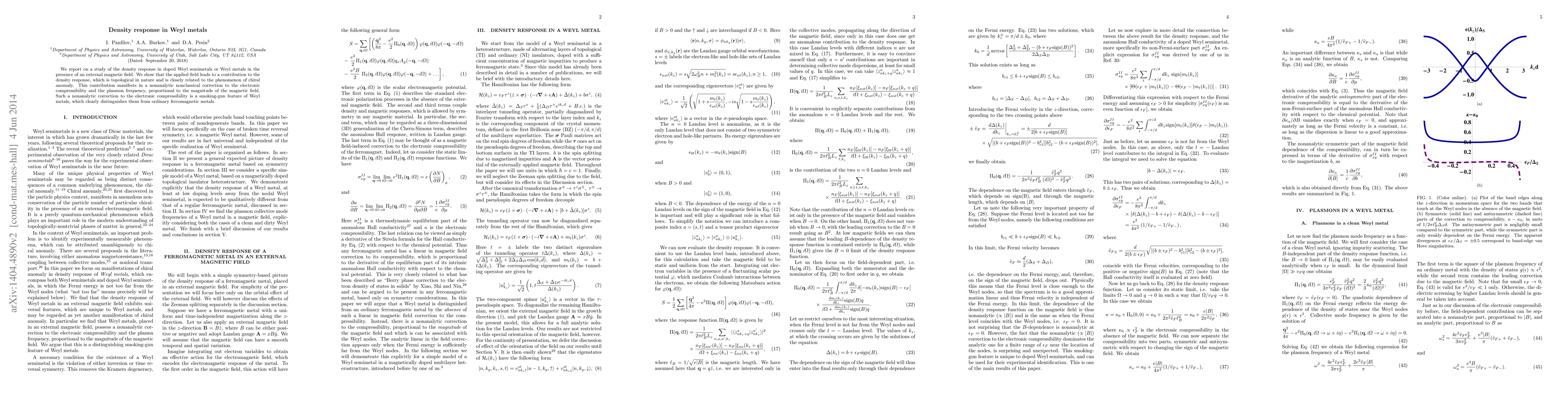 This study investigates the density response in doped Weyl metals under an external magnetic field, revealing a topological contribution linked to the chiral anomaly. This leads to a nonanalytic correction in electronic compressibility and plasmon frequency, distinguishing Weyl metals from ordinary ferromagnetic metals.