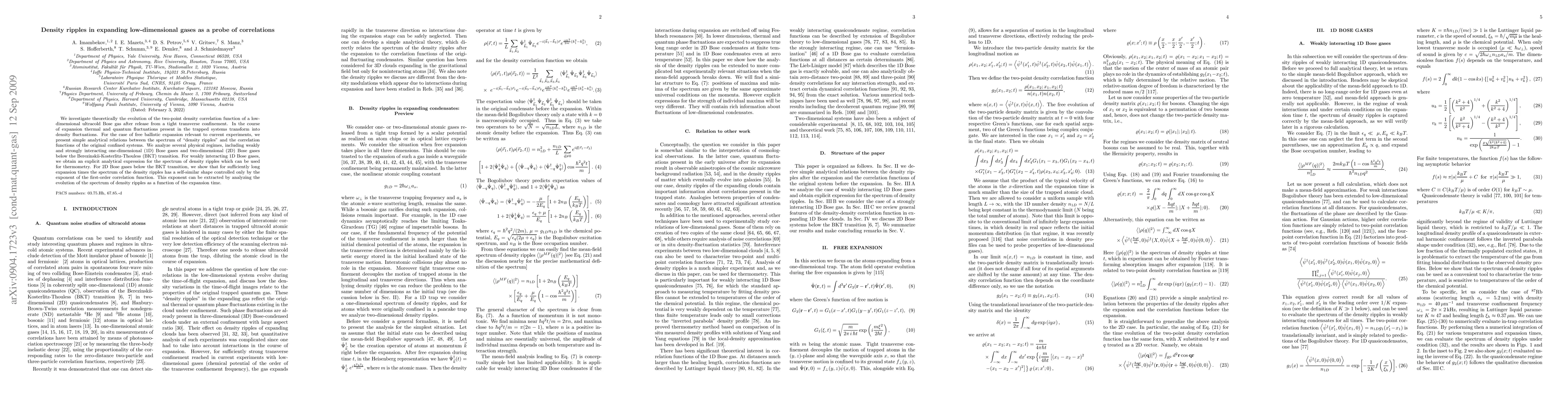 We investigate theoretically the evolution of the two-point density correlation function of a low-dimensional ultracold Bose gas after release from a tight transverse confinement. In the course of expansion thermal and quantum fluctuations present in the trapped systems transform into density fluctuations. For the case of free ballistic expansion relevant to current experiments, we present simple analytical relations between the spectrum of ``density ripples'' and the correlation functions of the original confined systems. We analyze several physical regimes, including weakly and strongly interacting one-dimensional (1D) Bose gases and two-dimensional (2D) Bose gases below the Berezinskii-Kosterlitz-Thouless (BKT) transition. For weakly interacting 1D Bose gases, we obtain an explicit analytical expression for the spectrum of density ripples which can be used for thermometry. For 2D Bose gases below the BKT transition, we show that for sufficiently long expansion times the spectrum of the density ripples has a self-similar shape controlled only by the exponent of the first-order correlation function. This exponent can be extracted by analyzing the evolution of the spectrum of density ripples as a function of the expansion time.