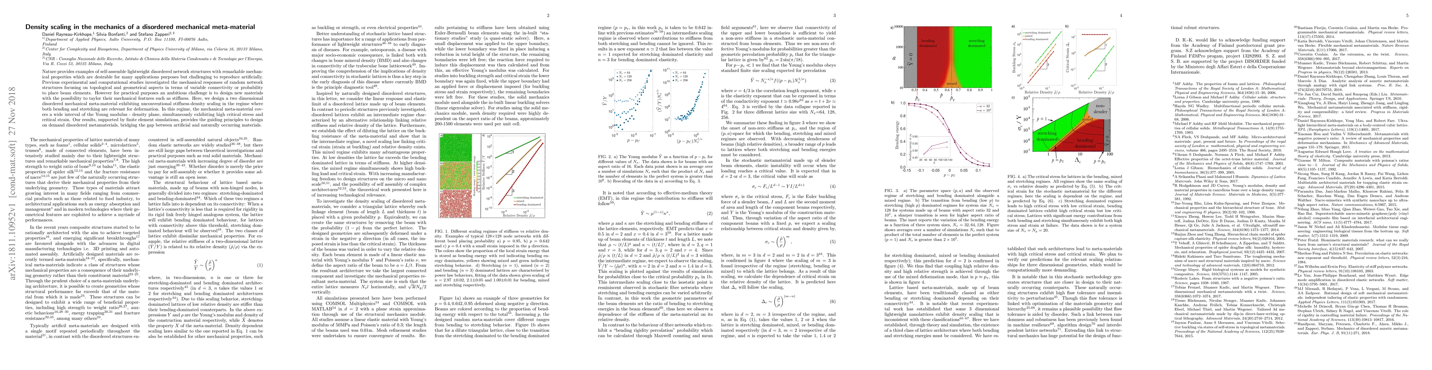 Nature provides examples of self-assemble lightweight disordered network structures with remarkable mechanical properties which are desirable for many applications purposes but challenging to reproduce artificially. Previous experimental and computational studies investigated the mechanical responses of random network structures focusing on topological and geometrical aspects in terms of variable connectivity or probability to place beam elements. However for practical purposes an ambitious challenge is to design new materials with the possibility to taylor their mechanical features such as stiffness. Here, we design a two dimensional disordered mechanical meta-material exhibiting unconventional stiffness-density scaling in the regime where both bending and stretching are relevant for deformation. In this regime, the mechanical meta-material covers a wide interval of the Young modulus - density plane, simultaneously exhibiting high critical stress and critical strain. Our results, supported by finite element simulations, provides the guiding principles to design on demand disordered metamaterials, bridging the gap between artificial and naturally occurring materials.