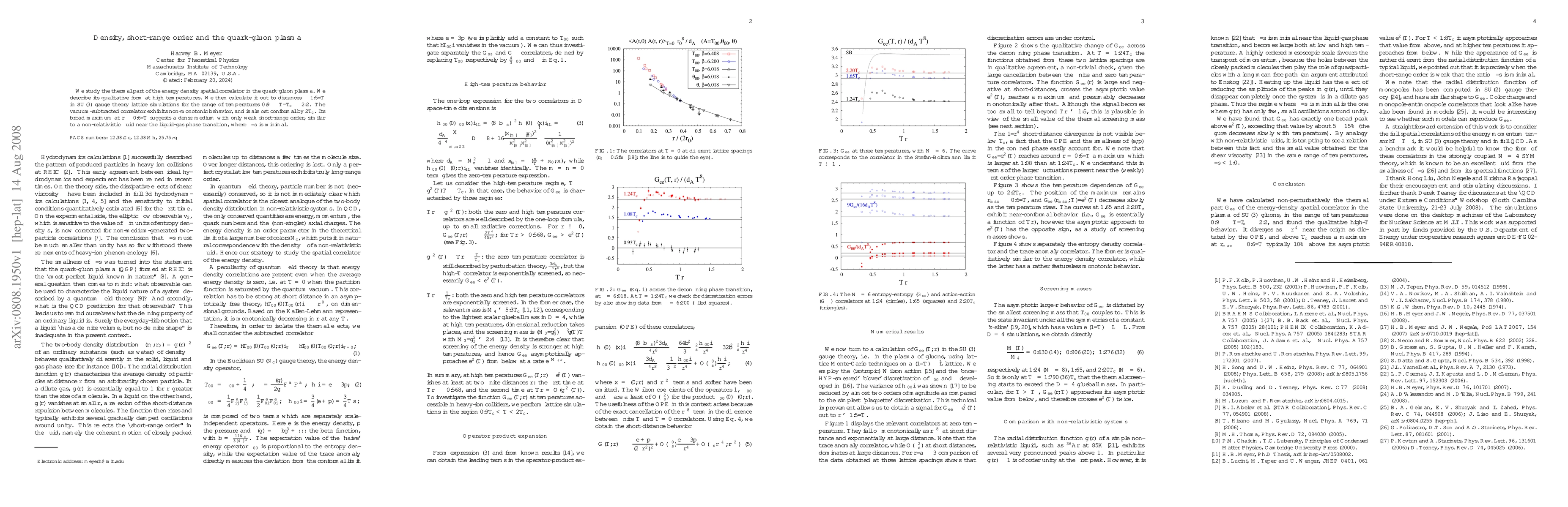 We study the thermal part of the energy density spatial correlator in the quark-gluon plasma. We describe its qualitative form at high temperatures. We then calculate it out to distances approx. 1.5/T in SU(3) gauge theory lattice simulations for the range of temperatures 0.9<= T/T_c<= 2.2. The vacuum-subtracted correlator exhibits non-monotonic behavior, and is almost conformal by 2T_c. Its broad maximum at r approx. 0.6/T suggests a dense medium with only weak short-range order, similar to a non-relativistic fluid near the liquid-gas phase transition, where eta/s is minimal.