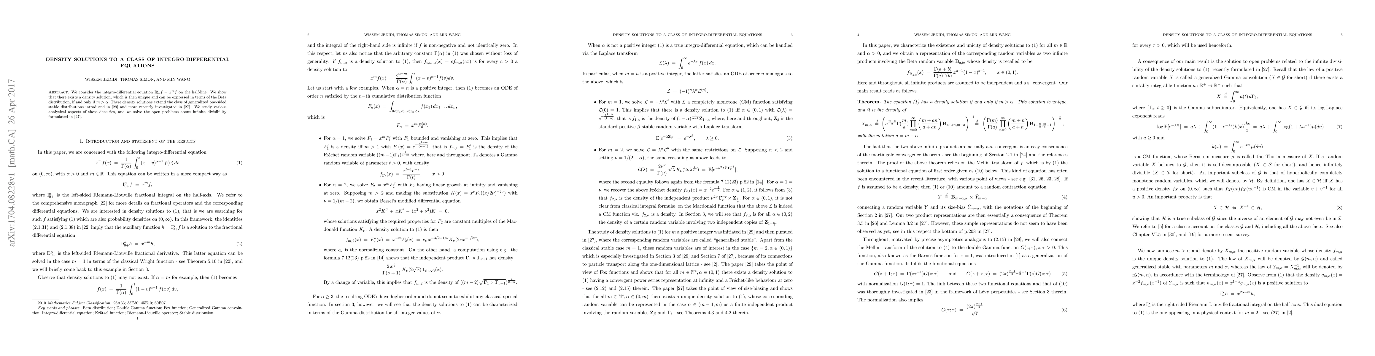 This paper shows that a specific type of mathematical equation has density solutions that exist only if the equation parameters meet certain conditions. These solutions can be expressed in terms of the Beta distribution.