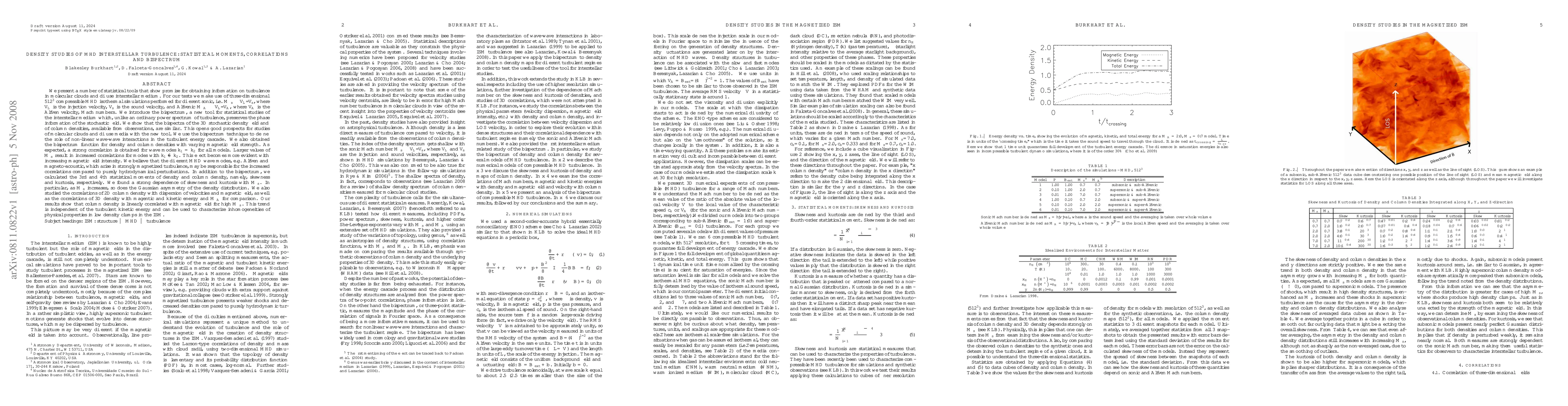 This paper introduces statistical tools, including the bispectrum, for studying turbulence in molecular clouds and the diffuse interstellar medium using MHD simulations. The bispectrum reveals non-linear wave-wave interactions and shows strong correlations between column density and magnetic field, independent of turbulent kinetic energy, useful for characterizing ISM inhomogeneities.