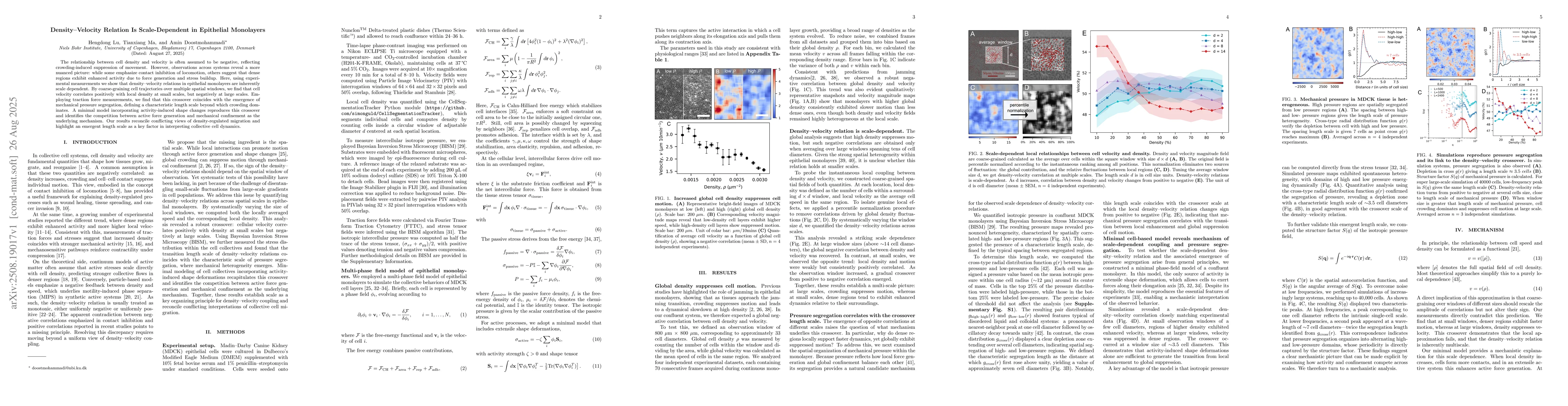 The relationship between cell density and velocity is often assumed to be negative, reflecting crowding-induced suppression of movement. However, observations across systems reveal a more nuanced picture: while some emphasize contact inhibition of locomotion, others suggest that dense regions exhibit enhanced activity due to force generation and stress buildup. Here, using experimental measurements we show that density-velocity relations in epithelial monolayers are inherently scale dependent. By coarse-graining cell trajectories over multiple spatial windows, we find that cell velocity correlates positively with local density at small scales, but negatively at large scales. Employing traction force measurements, we find that this crossover coincides with the emergence of mechanical pressure segregation, defining a characteristic length scale beyond which crowding dominates. A minimal model incorporating activity-induced shape changes reproduces this crossover and identifies the competition between active force generation and mechanical confinement as the underlying mechanism. Our results reconcile conflicting views of density-regulated migration and highlight an emergent length scale as a key factor in interpreting collective cell dynamics.