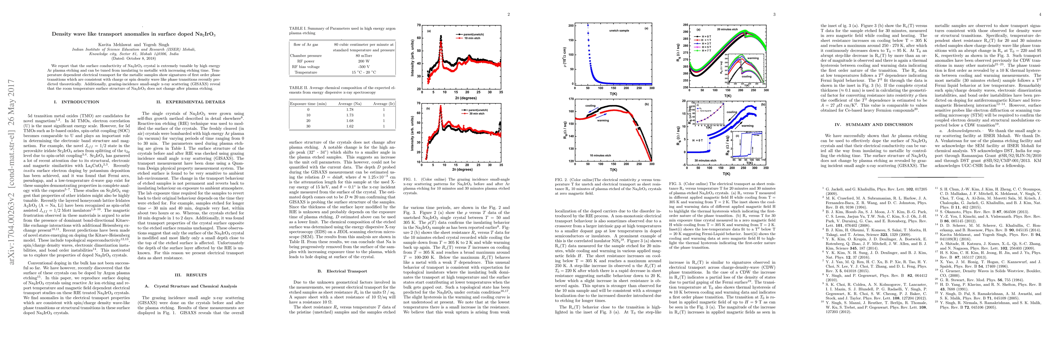We report that the surface conductivity of Na$_{2}$IrO$_3$ crystal is extremely tunable by high energy Ar plasma etching and can be tuned from insulating to metallic with increasing etching time. Temperature dependent electrical transport for the metallic samples show signatures of first order phase transitions which are consistent with charge or spin density wave like phase transitions recently predicted theoretically. Additionally, grazing-incidence small-angle x-ray scattering (GISAXS) reveal that the room temperature surface structure of Na$_{2}$IrO$_3$ does not change after plasma etching.
